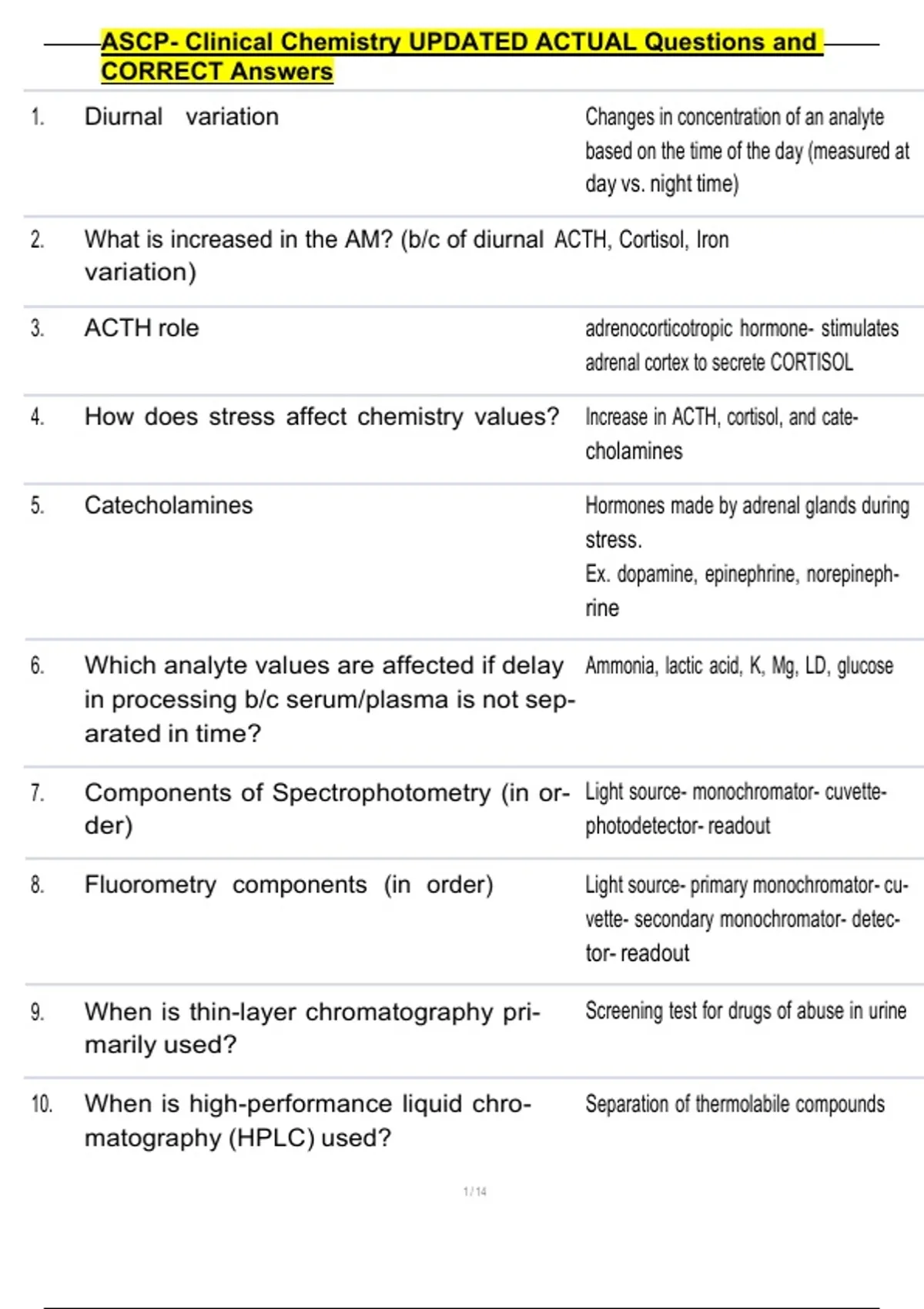 ASCP- Clinical Chemistry UPDATED ACTUAL Questions and