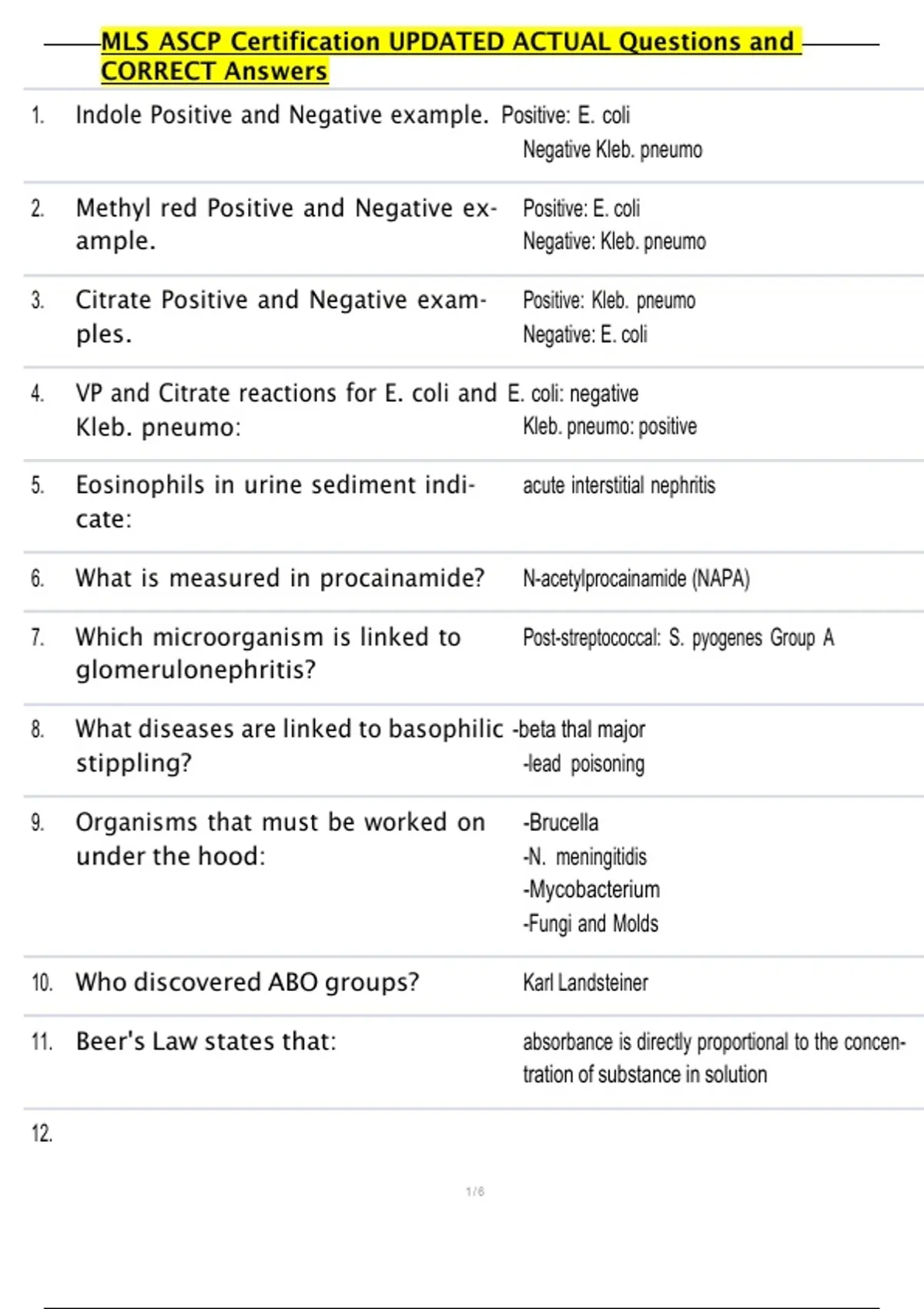, MLS ASCP Certification UPDATED ACTUAL Questions and