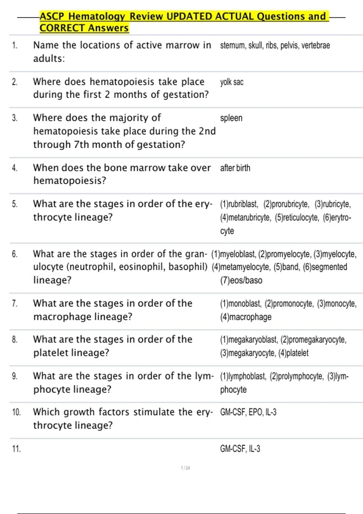 ASCP Hematology Review UPDATED ACTUAL Questions and