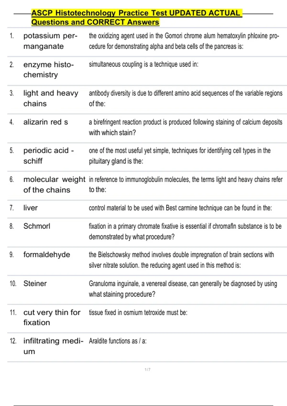 , ASCP Histotechnology Practice Test UPDATED ACTUAL