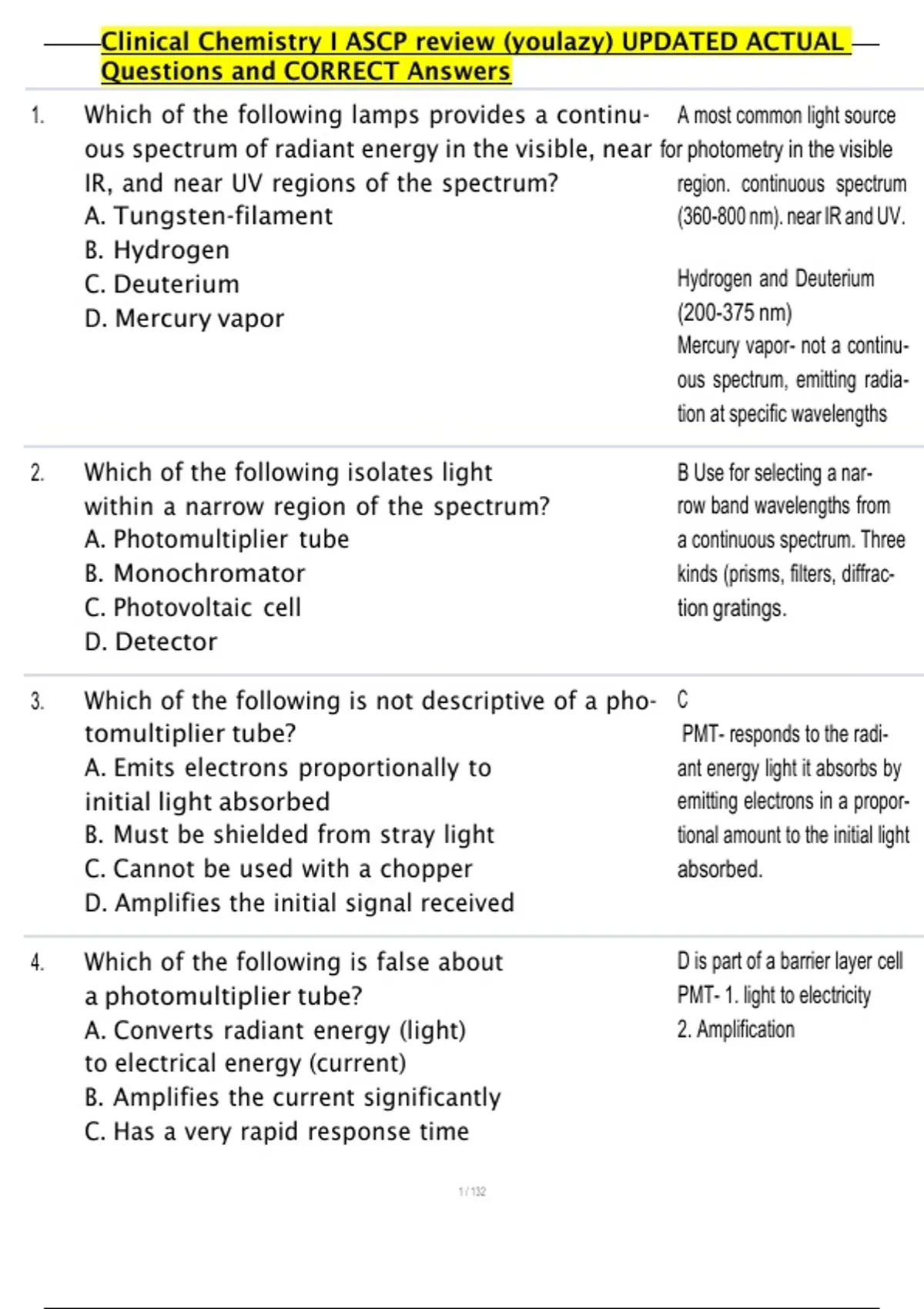 , Clinical Chemistry I ASCP review (youlazy) UPDATED ACTUAL
