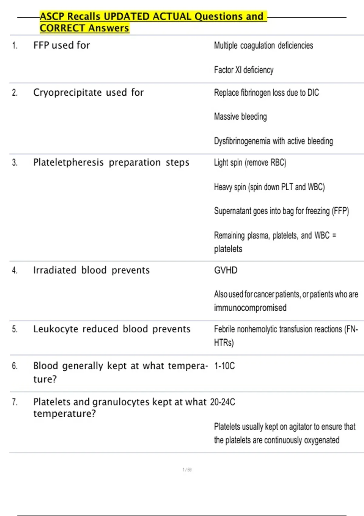 1. FFP used for Multiple coagulation deficiencies