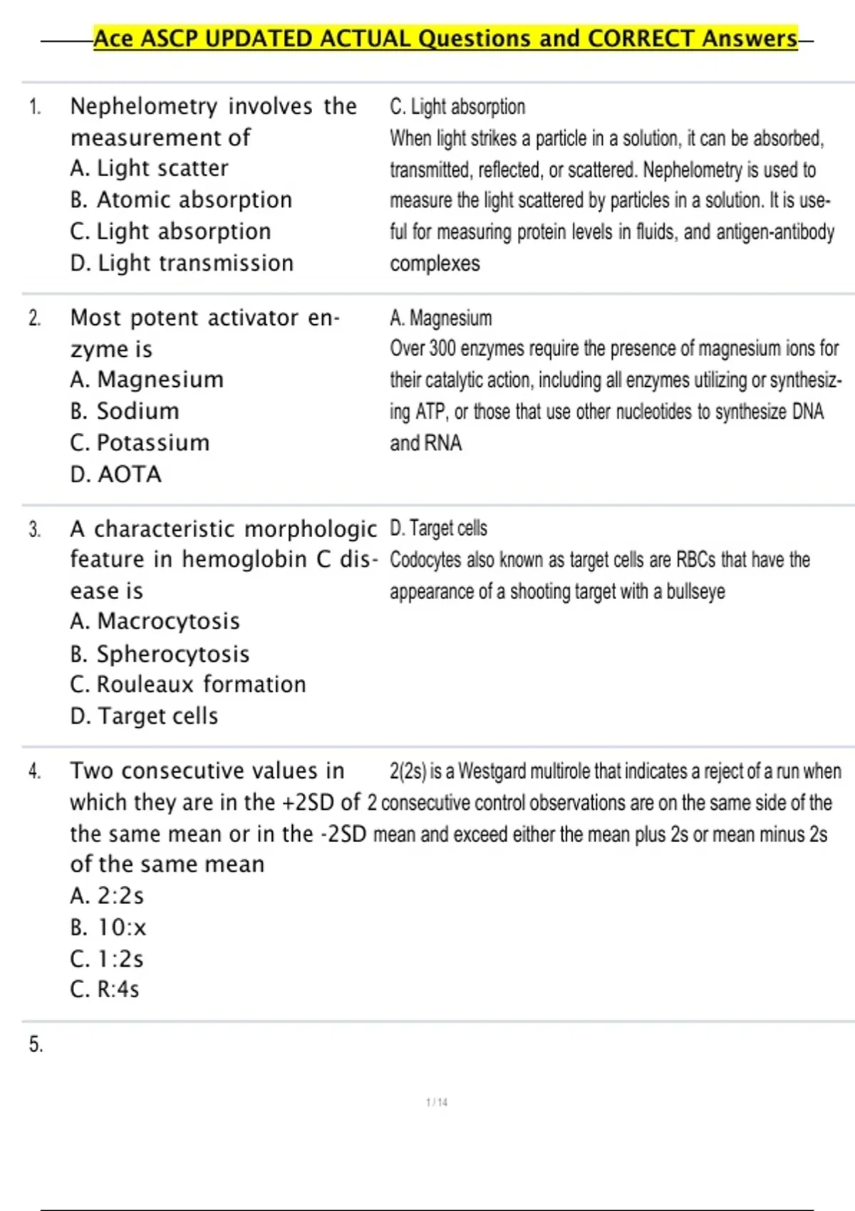 , Ace ASCP UPDATED ACTUAL Questions and CORRECT Answers