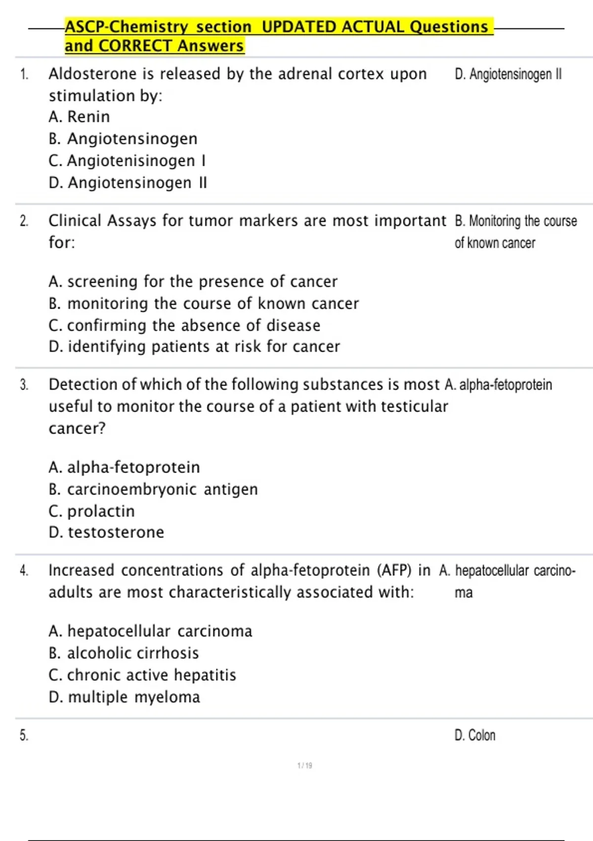 , ASCP-Chemistry section UPDATED ACTUAL Questions