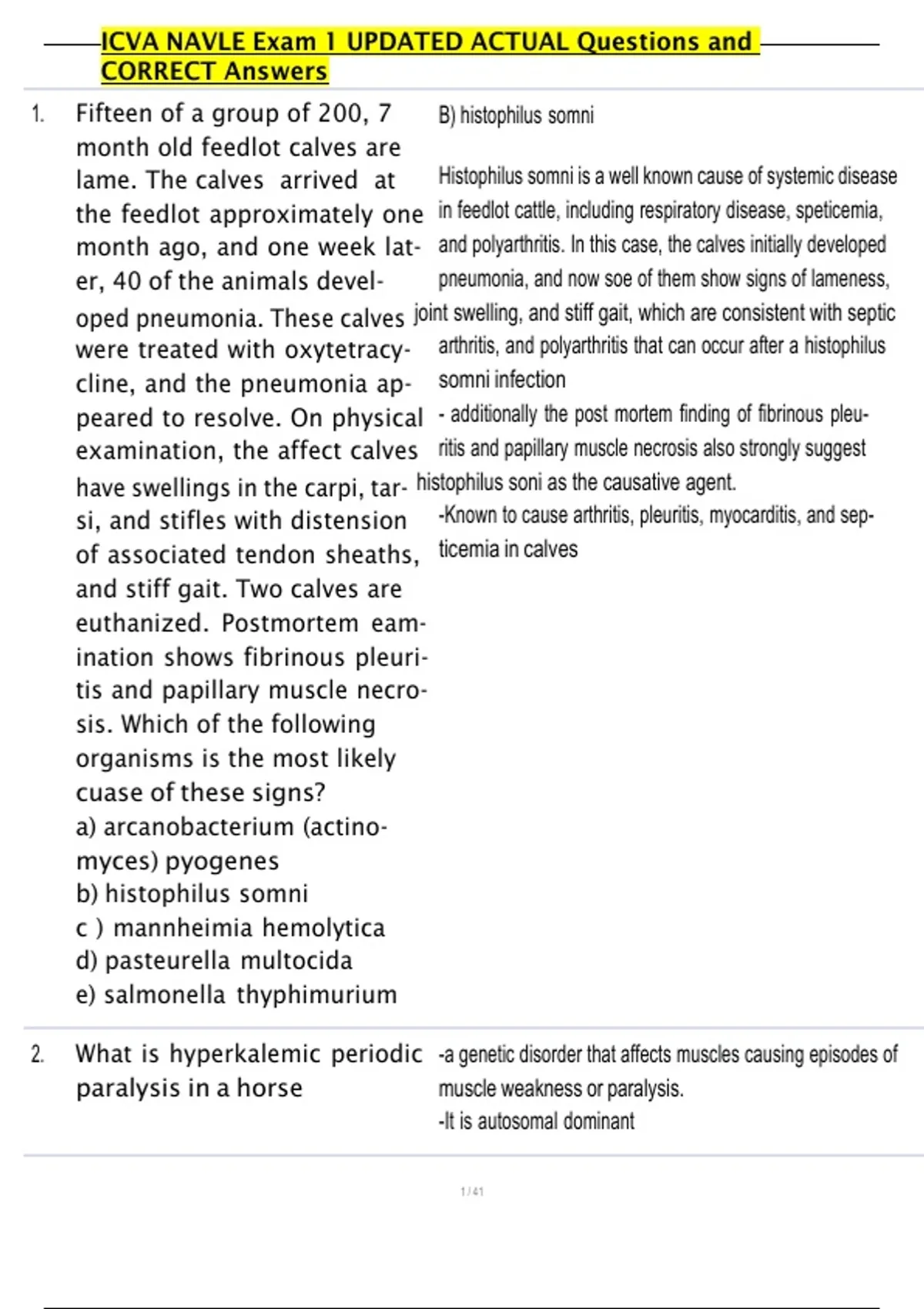 , ICVA NAVLE Exam 1 UPDATED ACTUAL Questions and