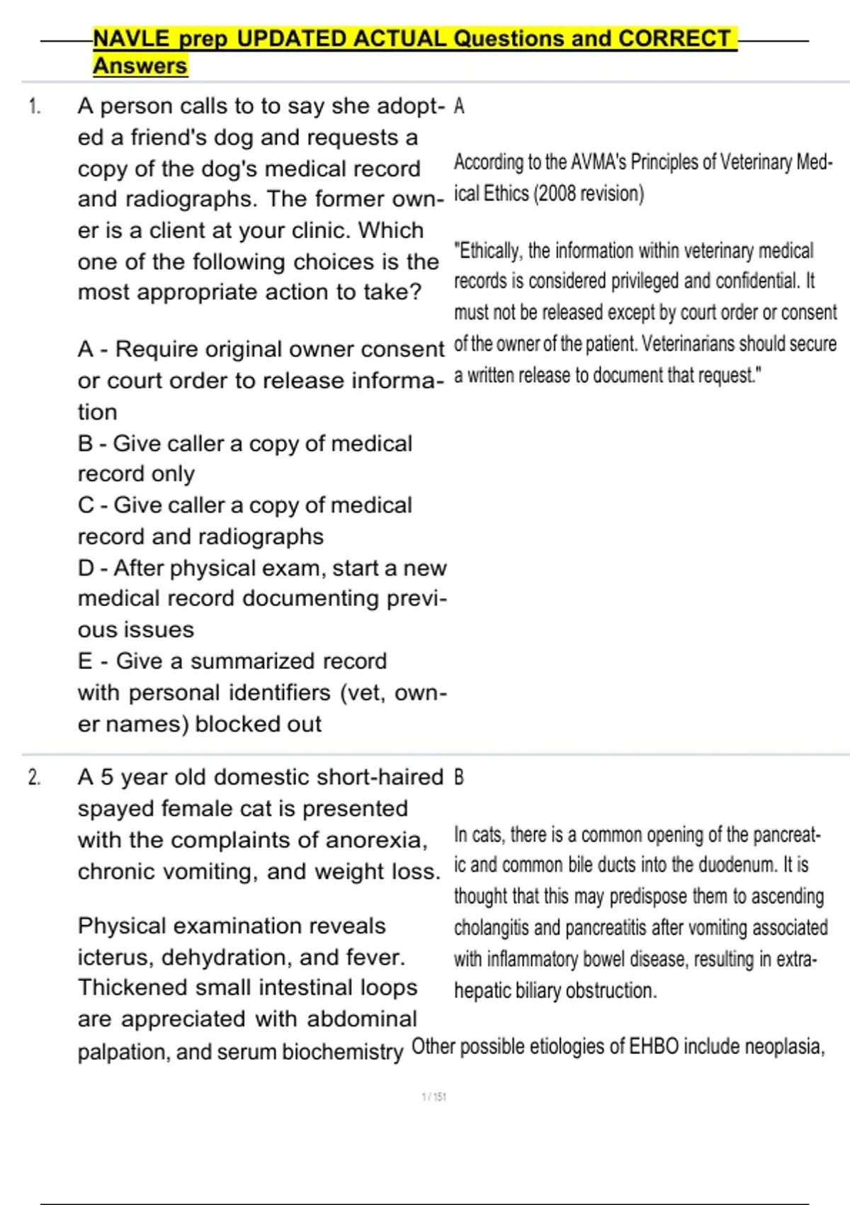 , NAVLE prep UPDATED ACTUAL Questions and CORRECT