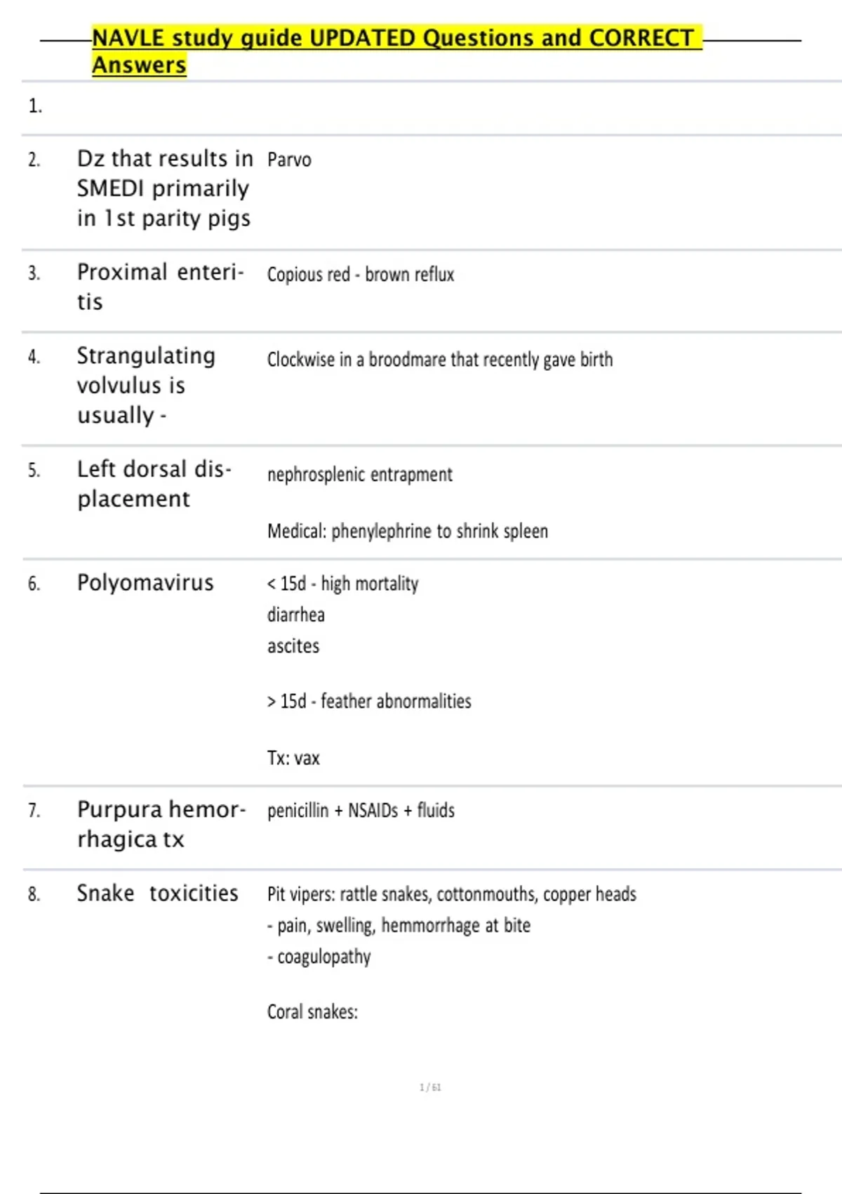 , NAVLE study guide UPDATED Questions and CORRECT
