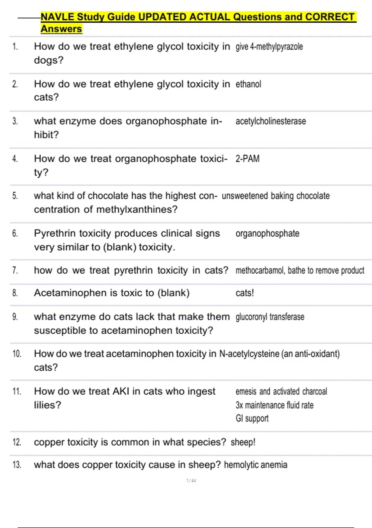 , NAVLE Study Guide UPDATED ACTUAL Questions and CORRECT