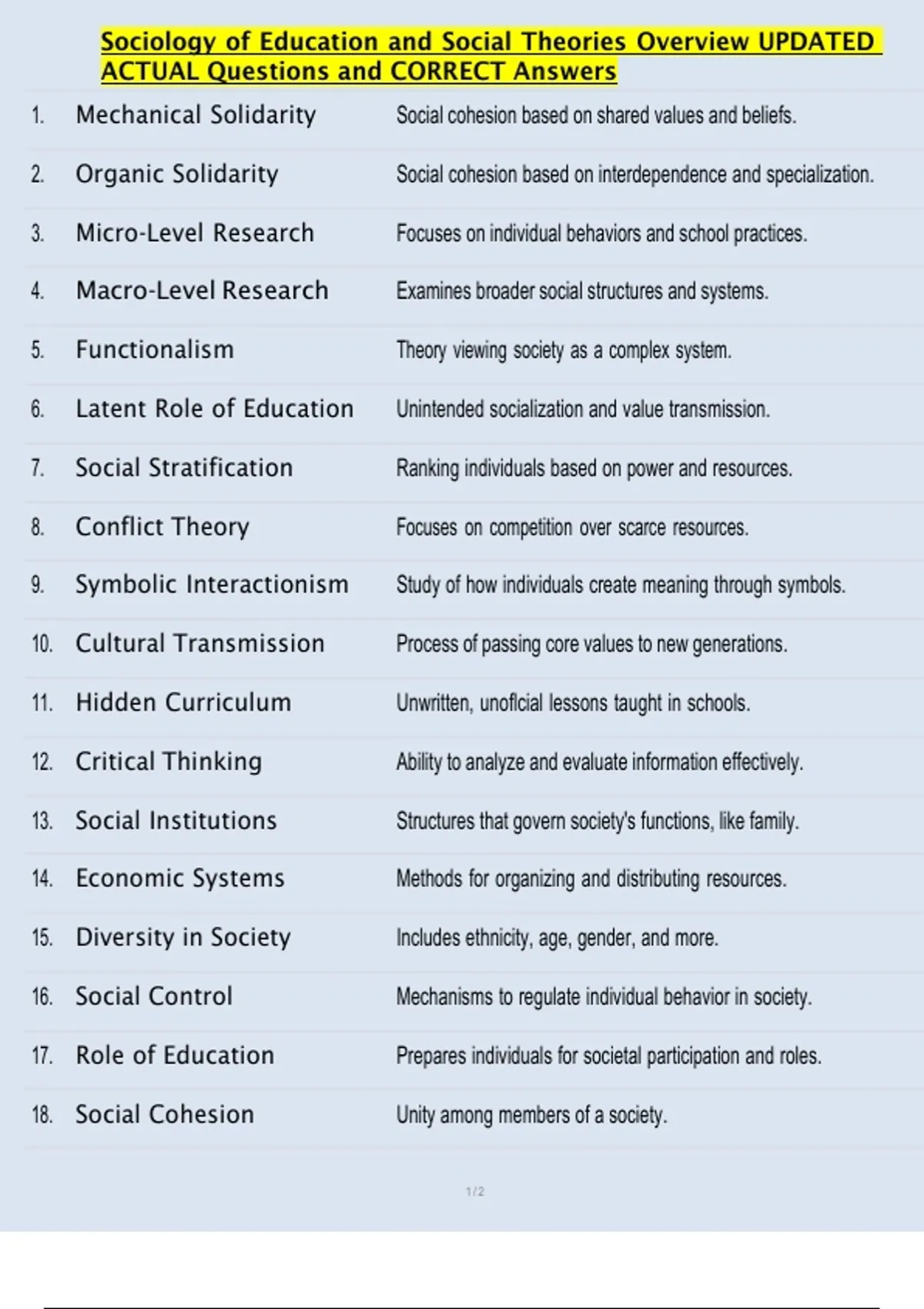 1. Mechanical Solidarity Social cohesion based on shared values and beliefs.