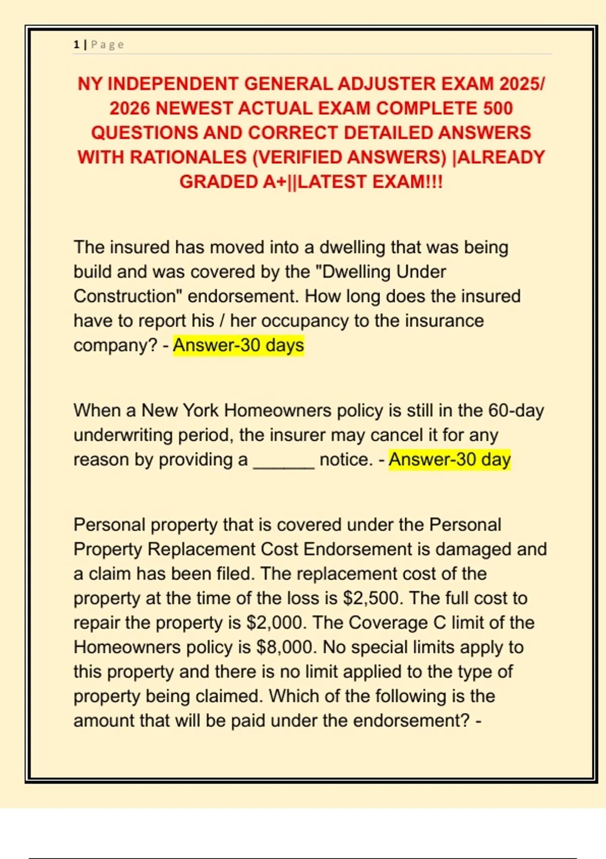 NY INDEPENDENT GENERAL ADJUSTER EXAM 2025/
