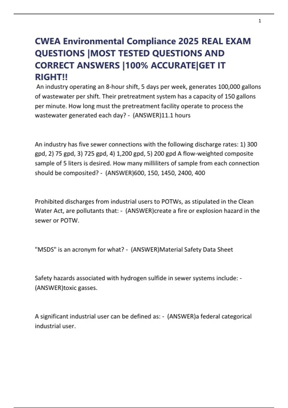 CWEA Environmental Compliance 2025 REAL EXAM