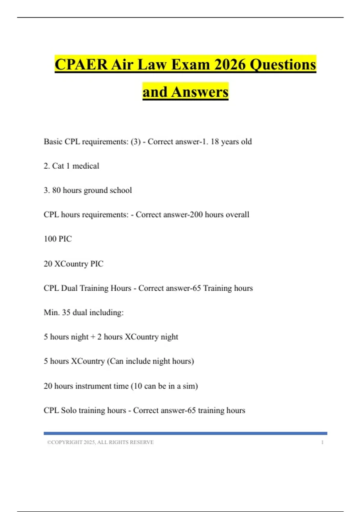 Basic CPL requirements: (3) - Correct answer-1. 18 years old