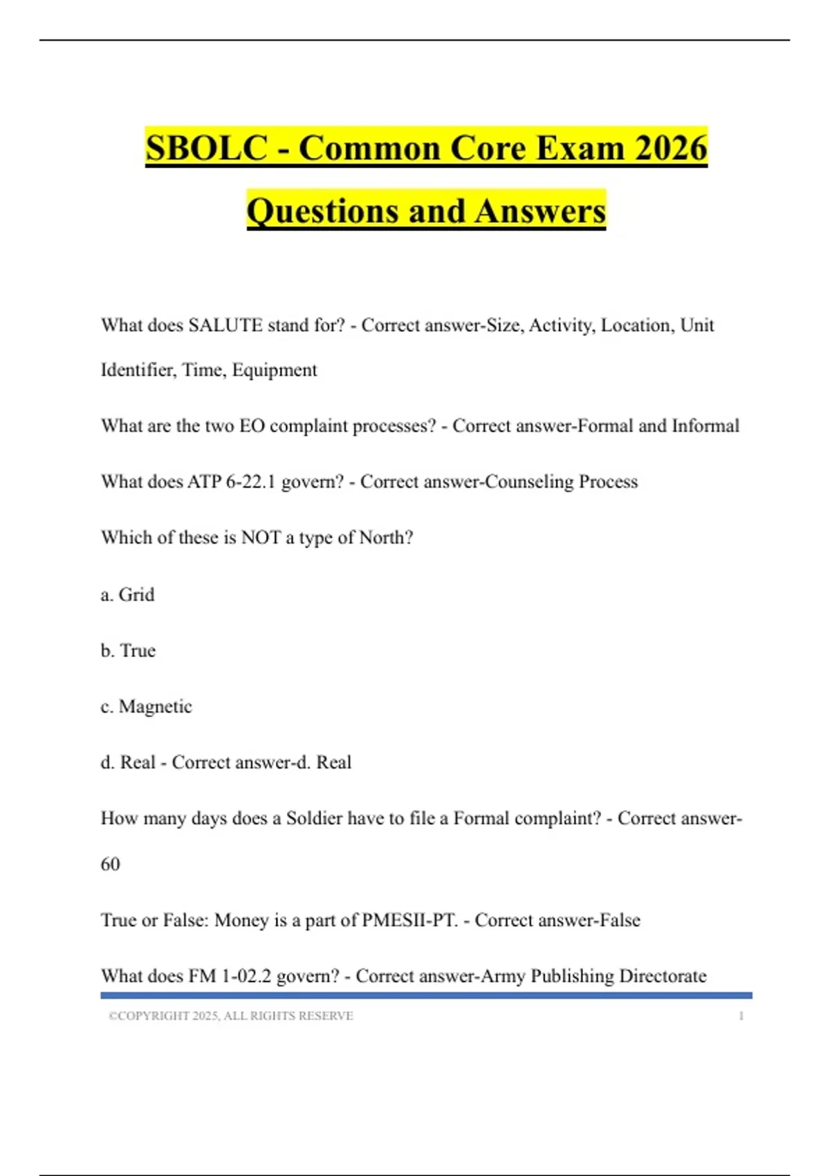 SBOLC - Common Core Exam 2026 Questions and Answers