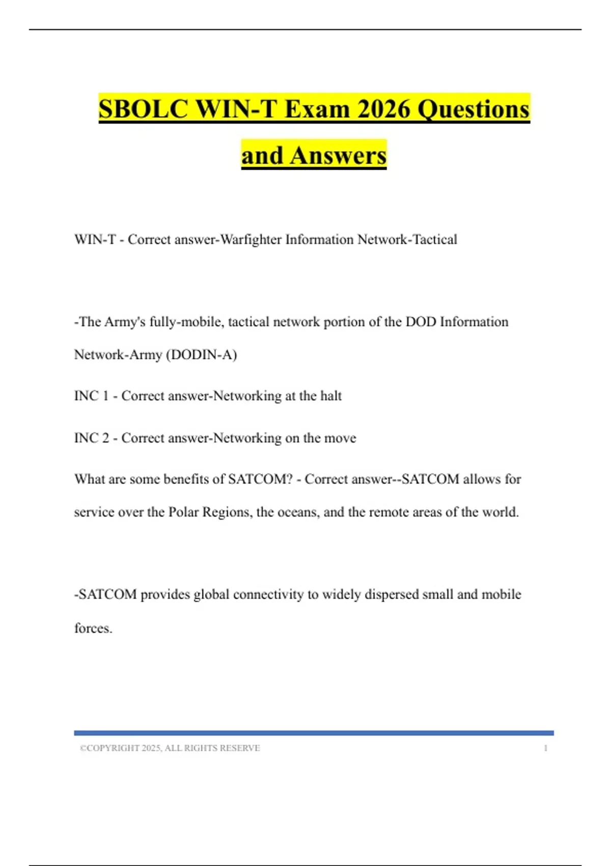 SBOLC WIN-T Exam 2026 Questions