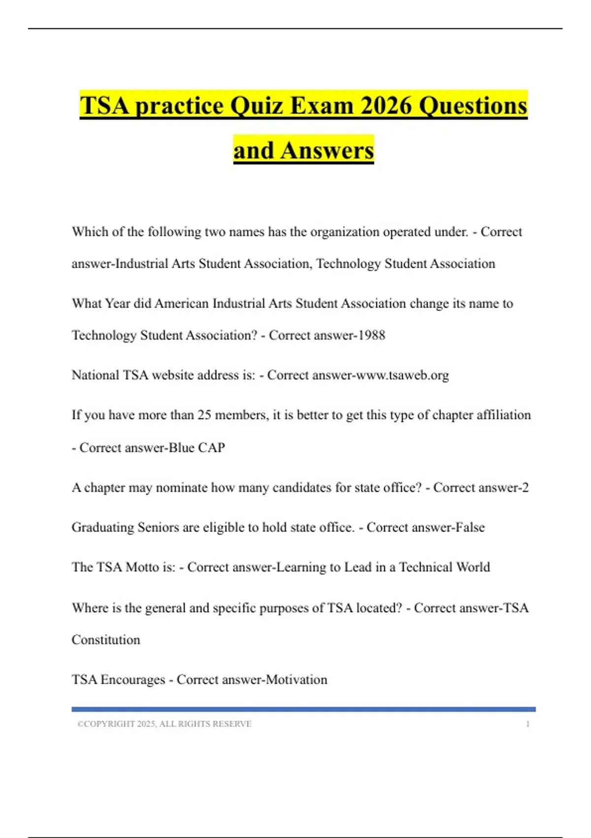 National TSA website address is: - Correct answer-www.tsaweb.org