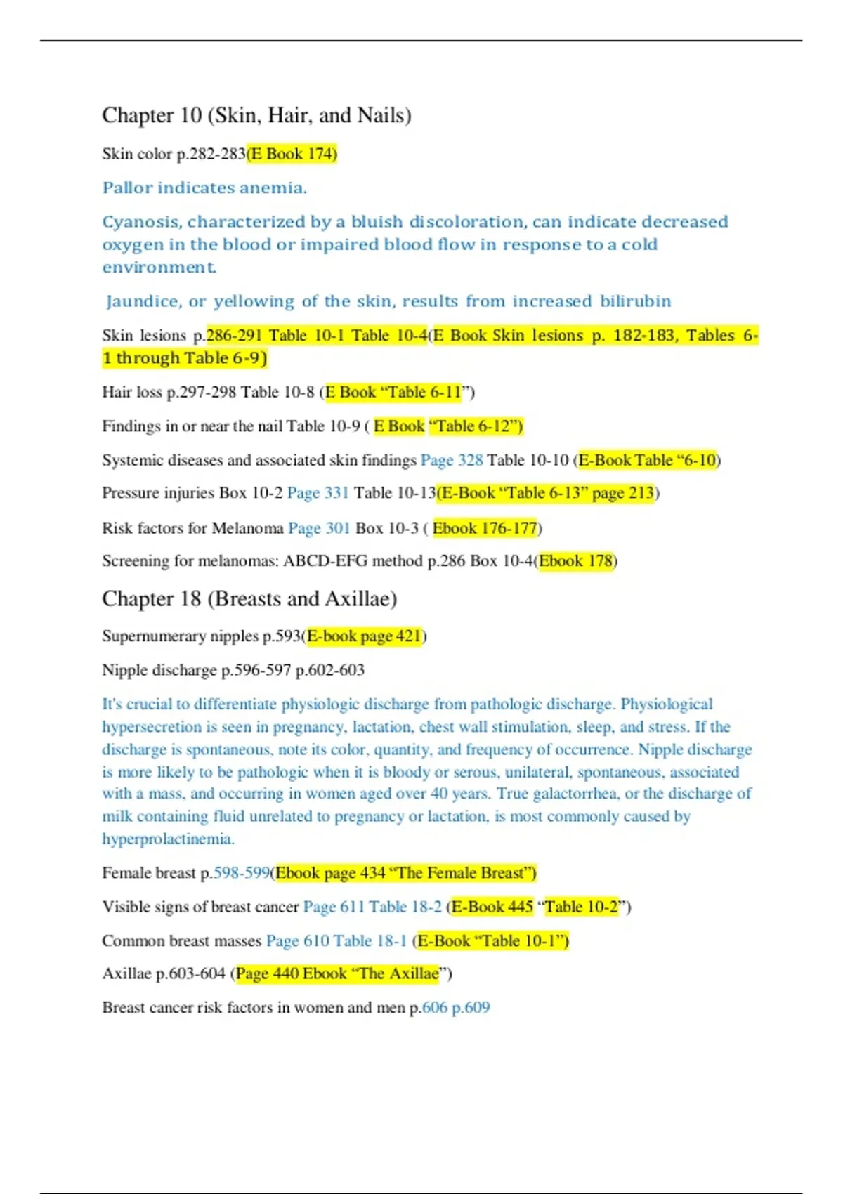Visible signs of breast cancer Page 611 Table 18-2 (E-Book 445 “Table 10-2”)