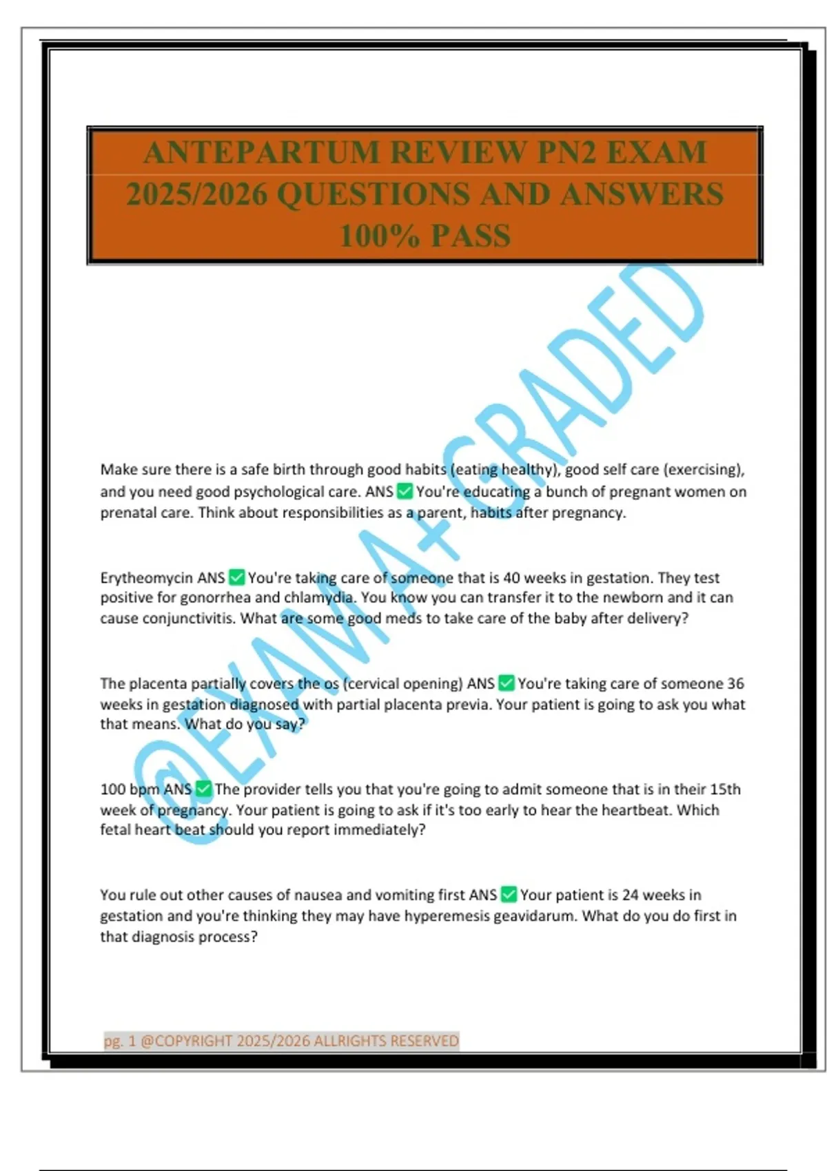 ANTEPARTUM REVIEW PN2 EXAM