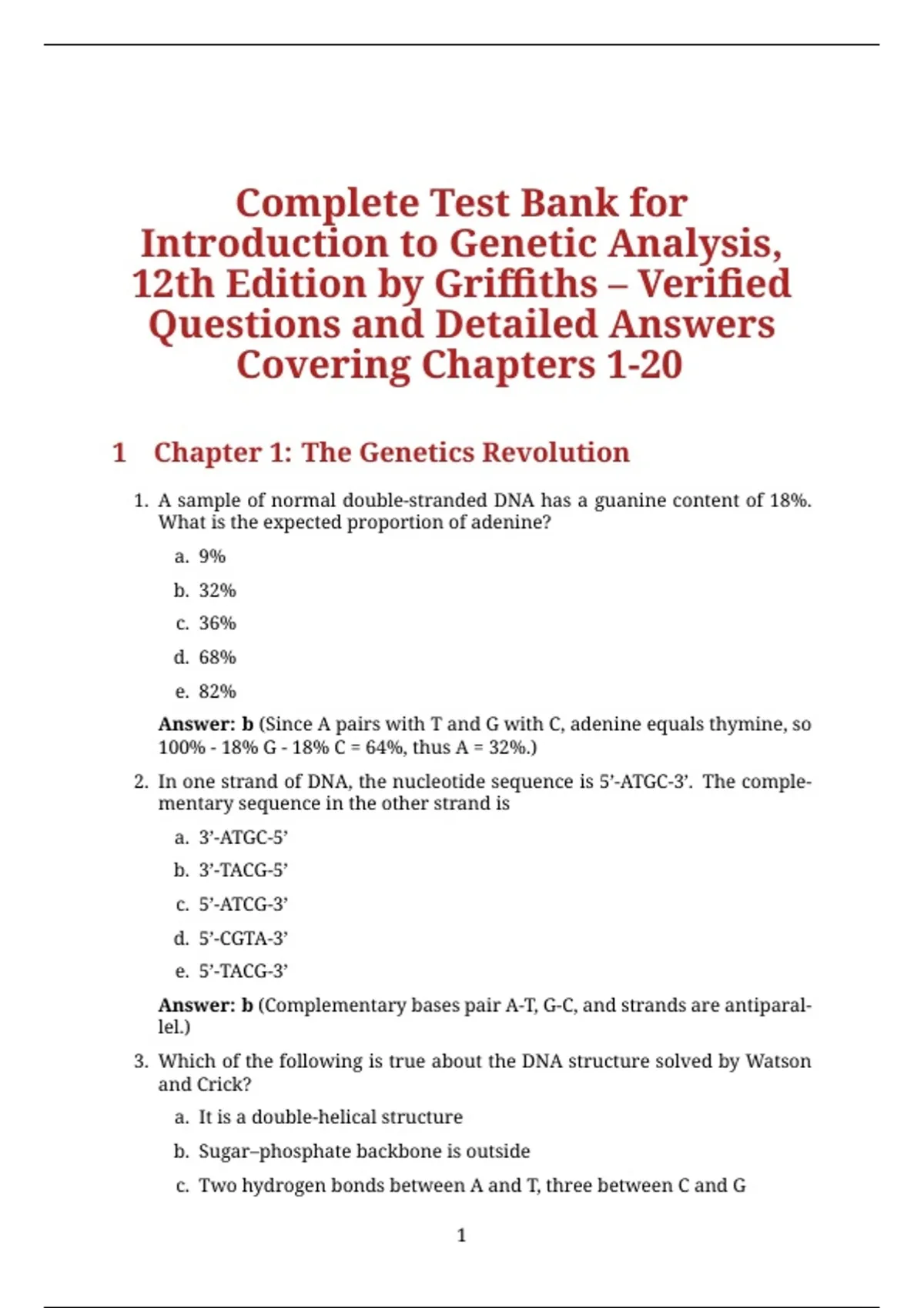 1. A sample of normal double-stranded DNA has a guanine content of 18%.