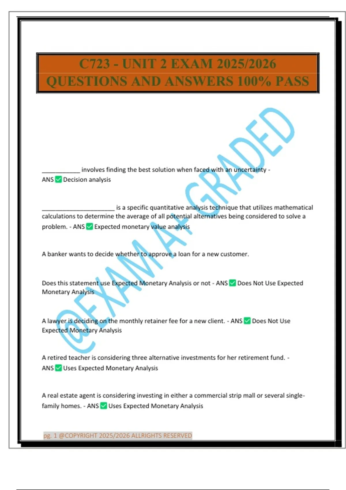 C723 - UNIT 2 EXAM 2025/2026 QUESTIONS AND ANSWERS 100% PASS