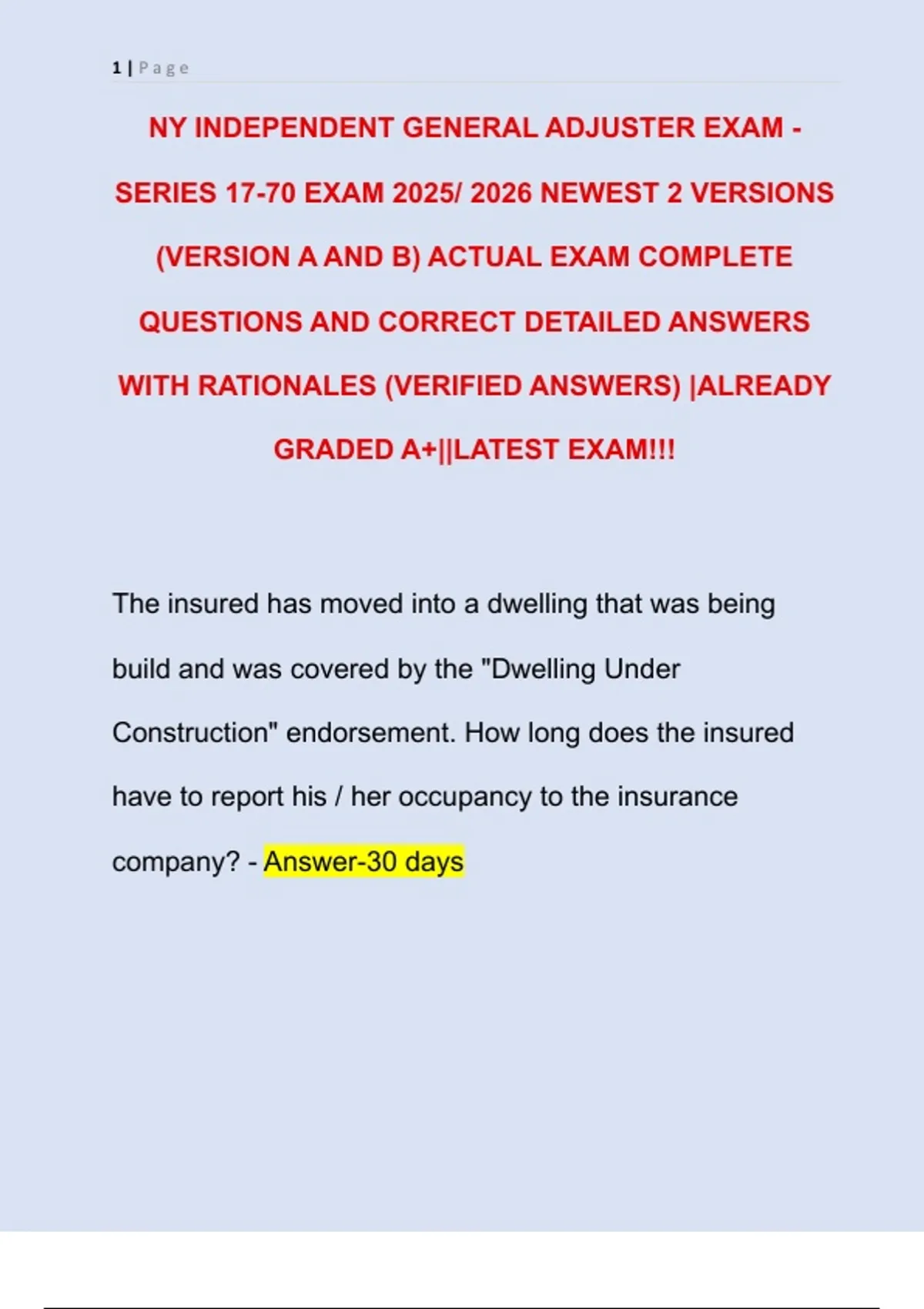 NY INDEPENDENT GENERAL ADJUSTER EXAM -