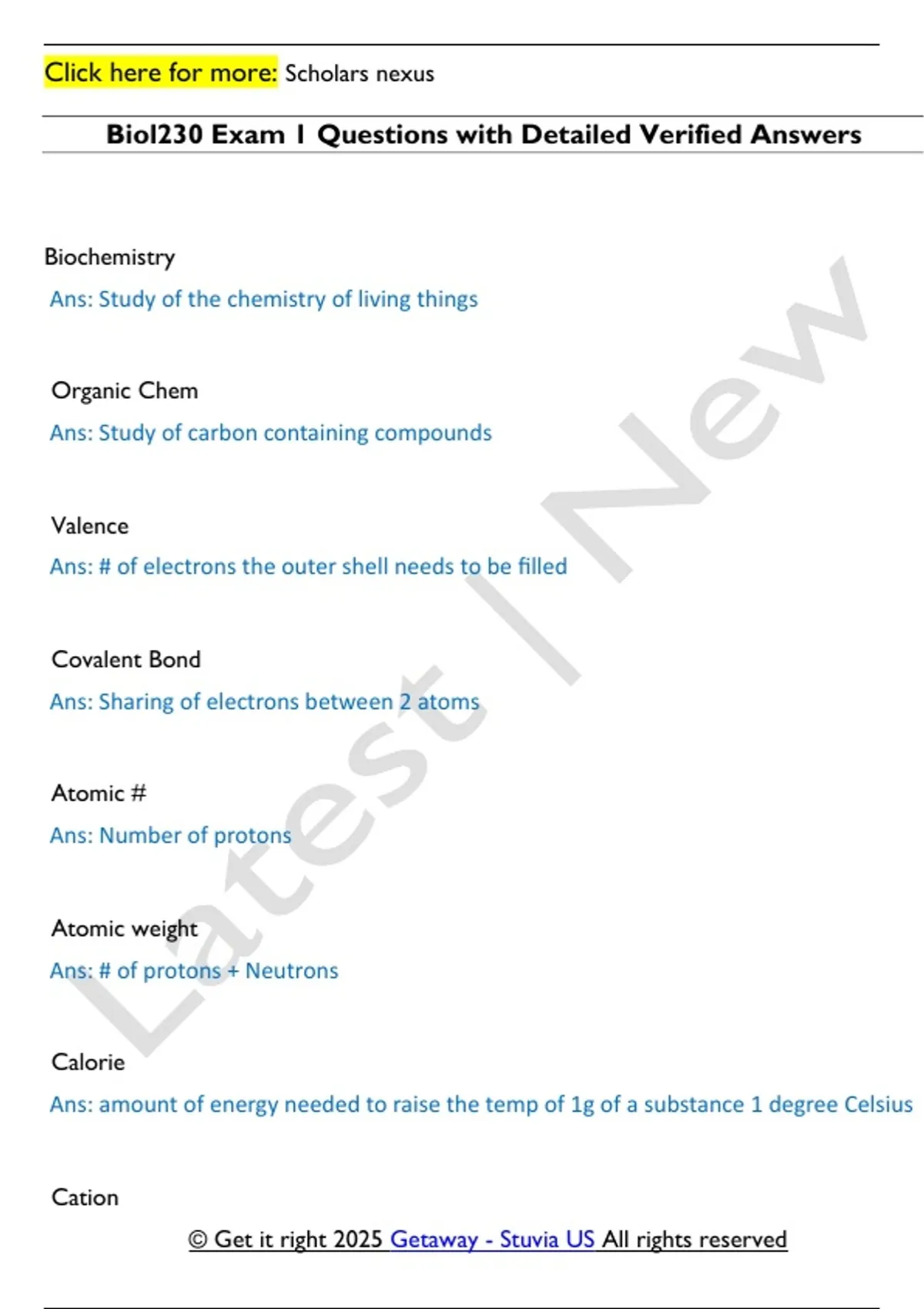 Biol230 Exam 1 Questions with Detailed Verified Answers Biol230 Exam 1 Questions with Detailed Verified Answers