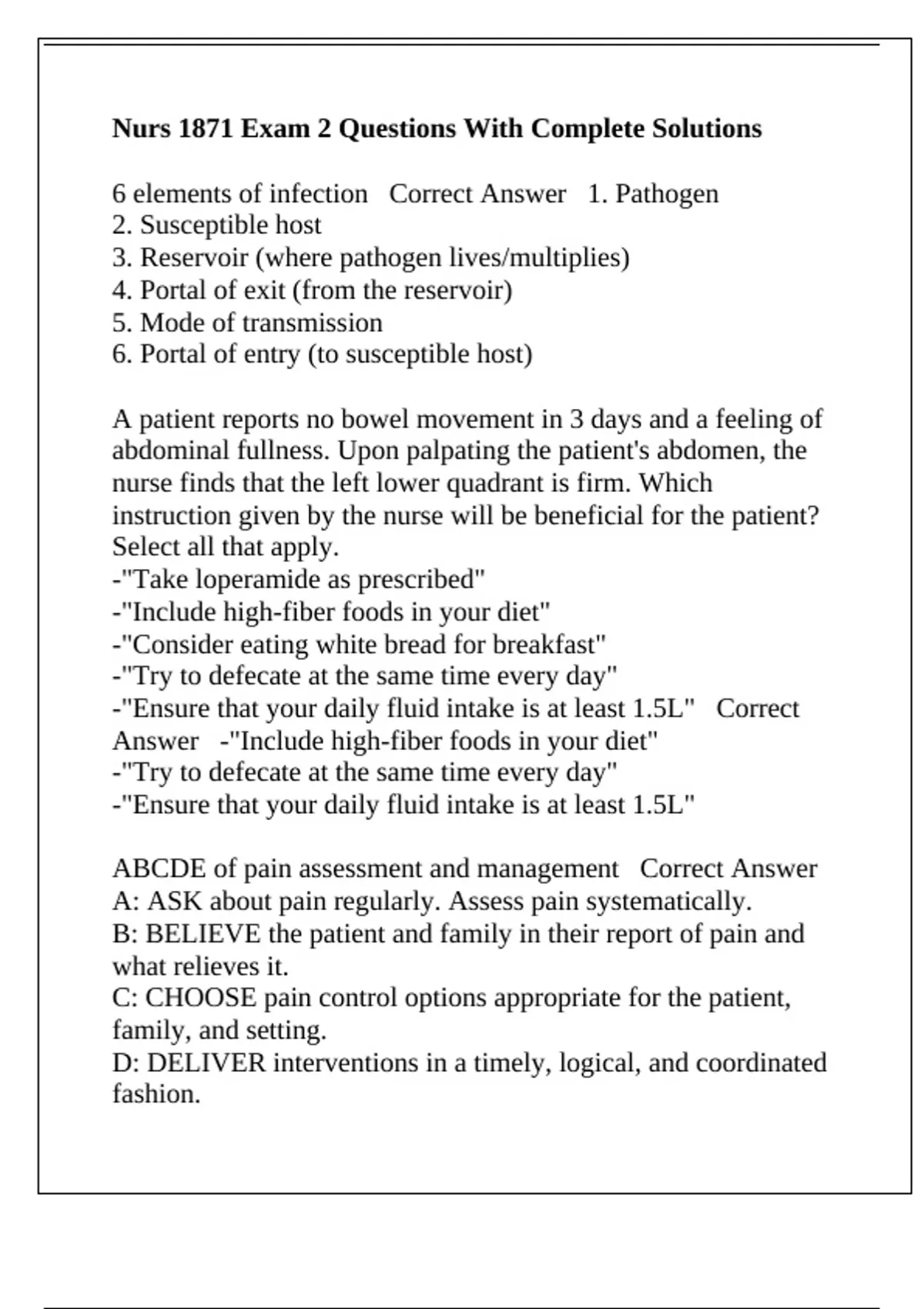 ABCDE of pain assessment and management Correct Answer