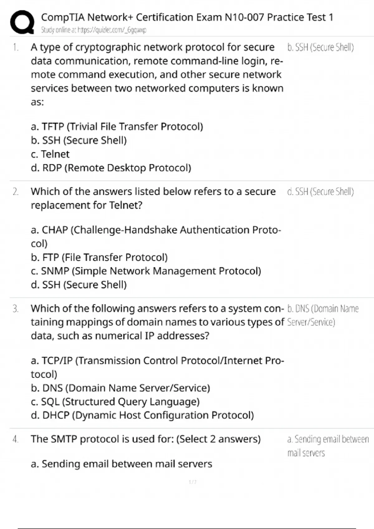 comptia network n10 007 practice test 1