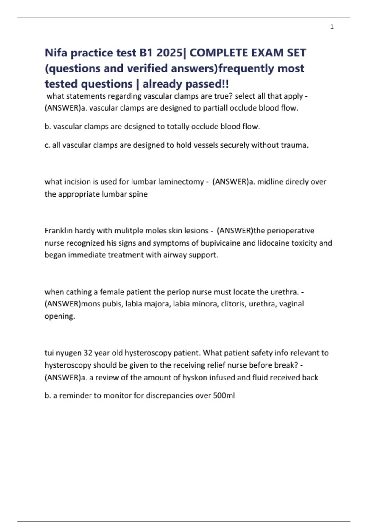 Nifa practice test B1 2025| COMPLETE EXAM SET (questions and verified answers)frequently most tested questions | already passed!!