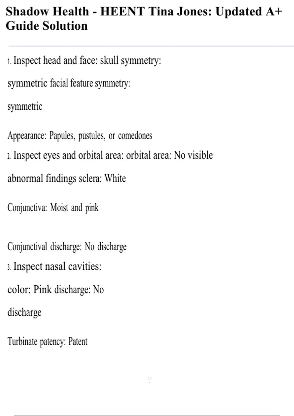 Shadow Health - HEENT Tina Jones: Updated A+