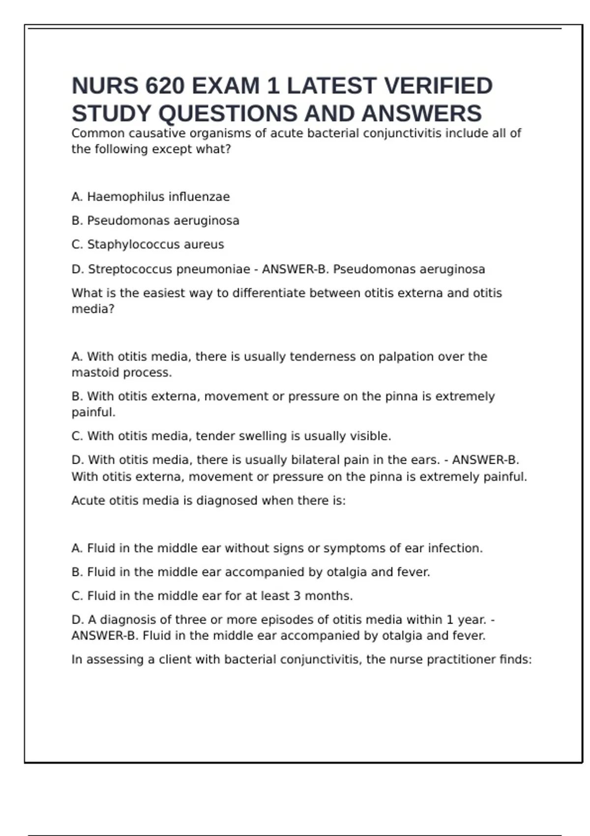 D. With otitis media, there is usually bilateral pain in the ears. - ANSWER-B.
