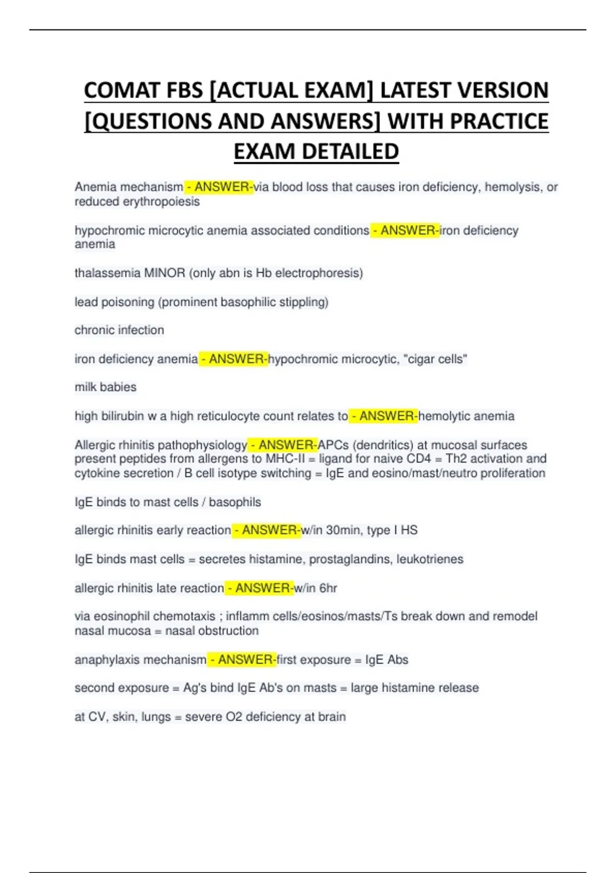 COMAT FBS [ACTUAL EXAM] LATEST VERSION