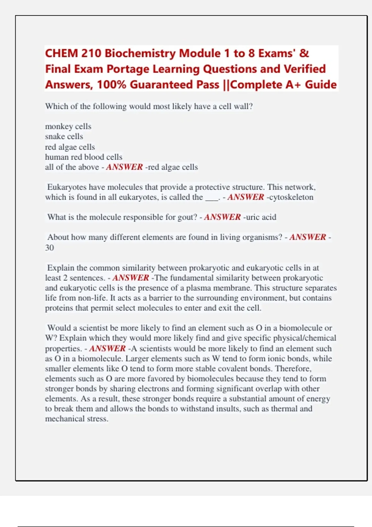 Small elements that are common in biomolecules: - ANSWER -CHOPS N: