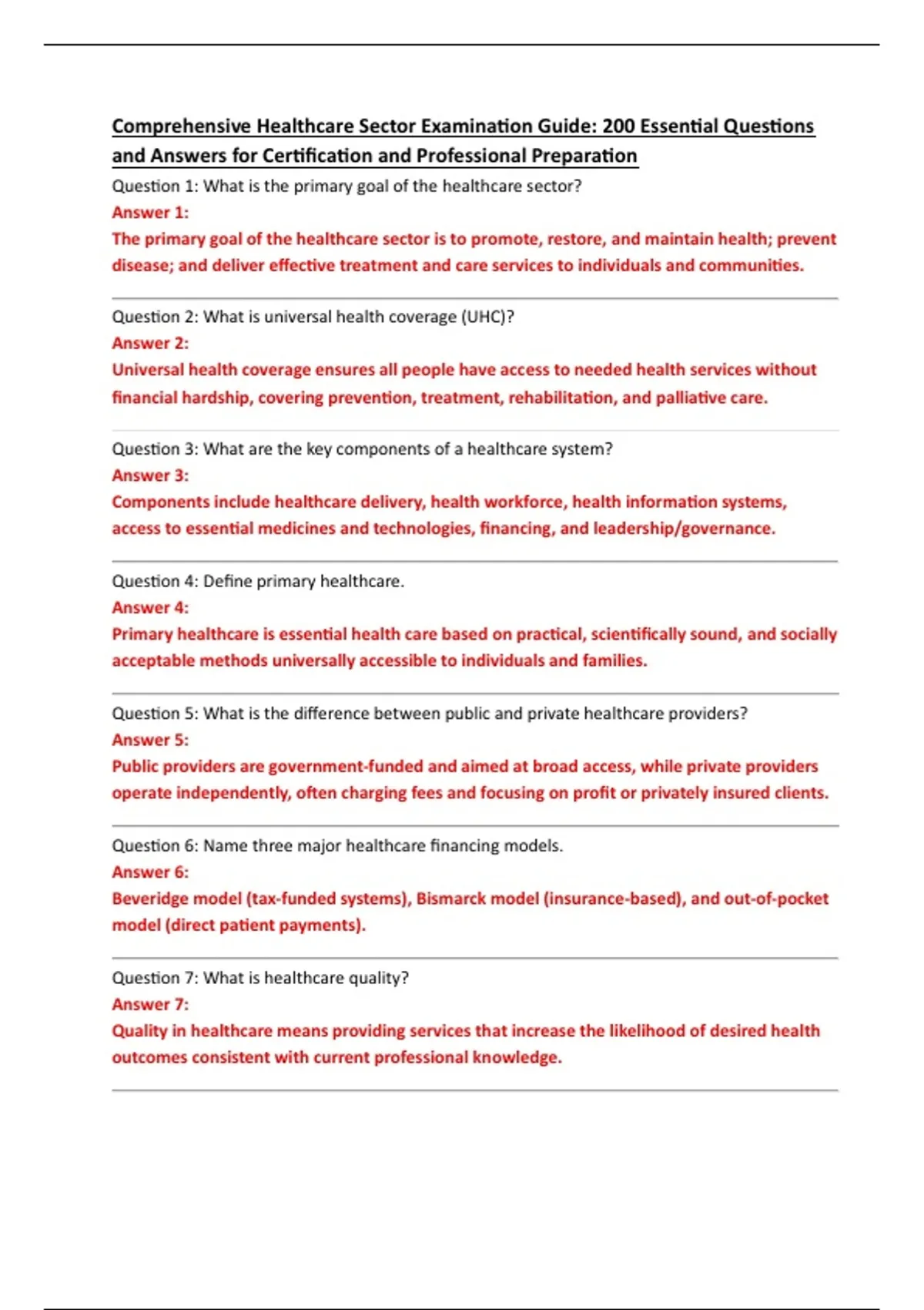Comprehensive Healthcare Sector Examination Guide: 200 Essential Questions