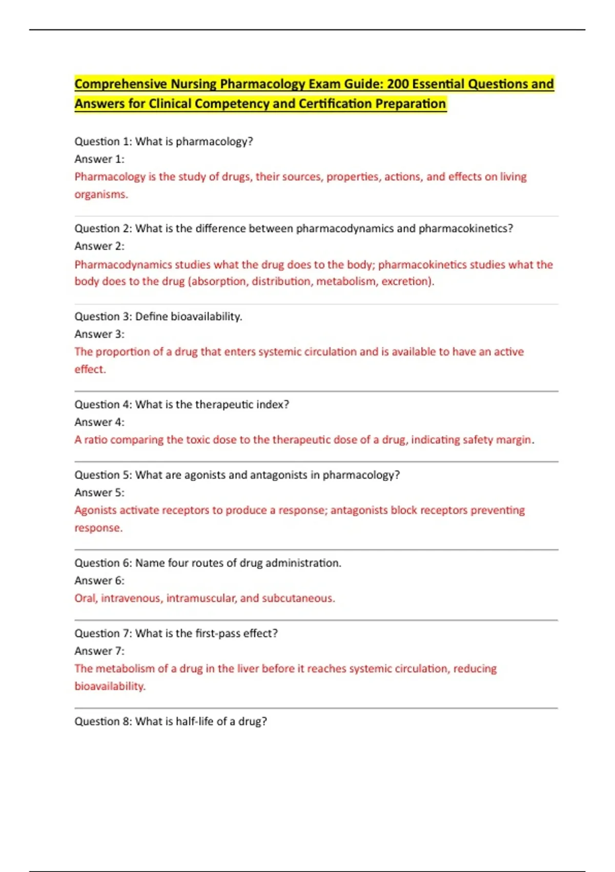Comprehensive Nursing Pharmacology Exam Guide: 200 Essential Questions and