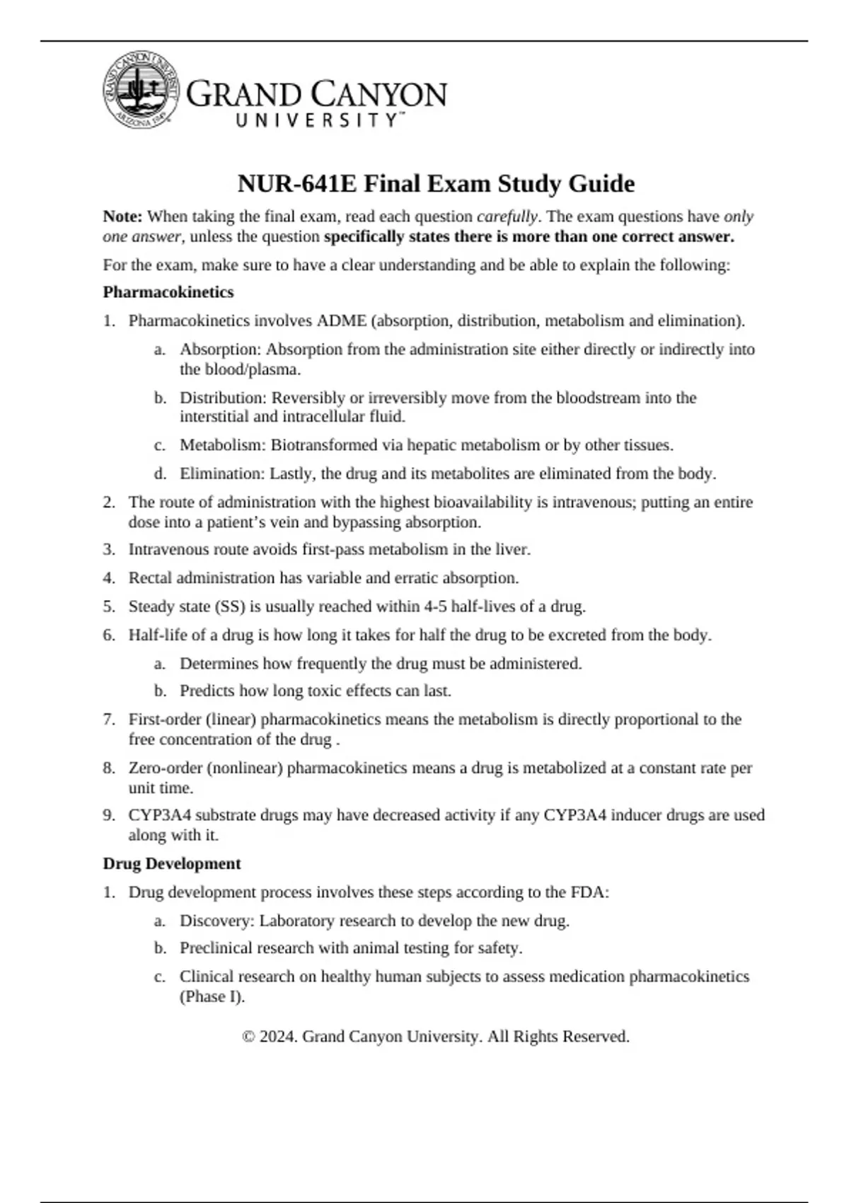 NUR-641E Final Exam Study Guide | 2025/2026 Update with complete solutions - GCU.