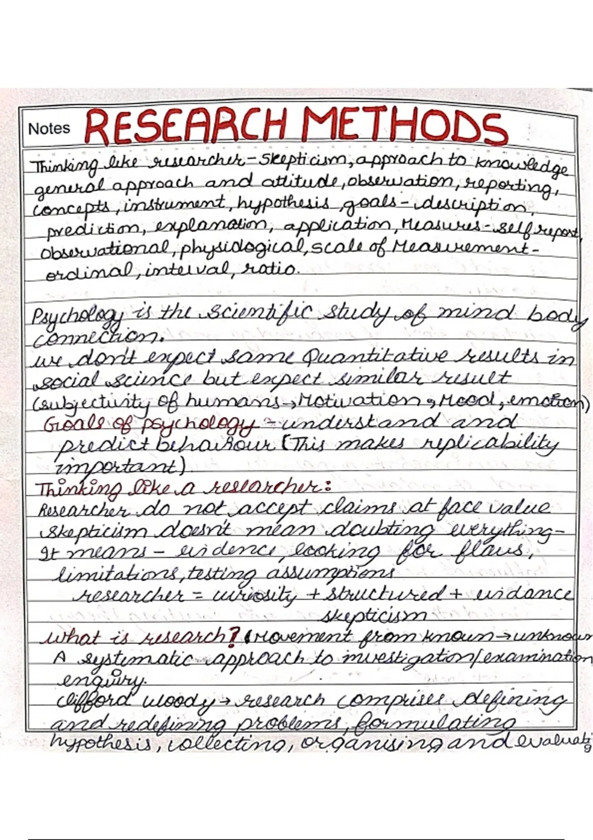 The document has detailed notes on introduction to research methodology, steps, hypothesis, basics,