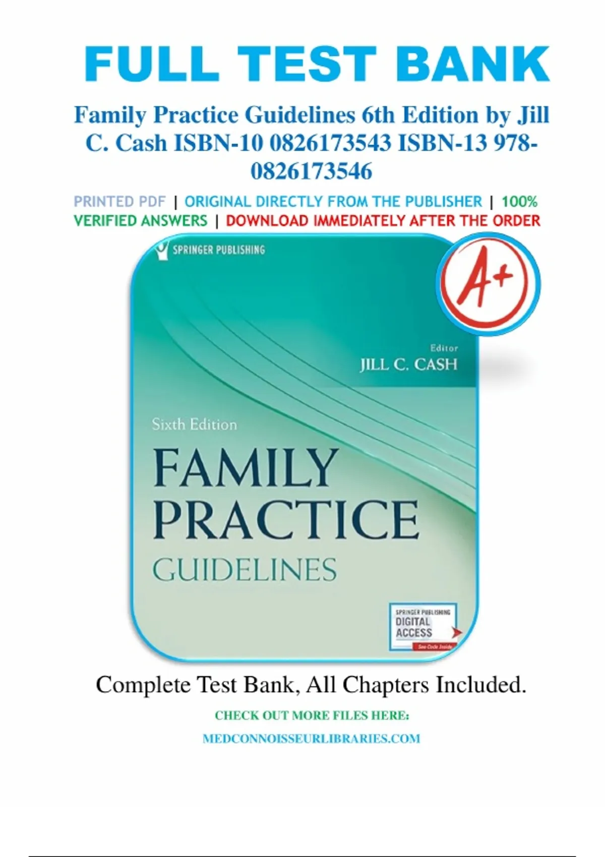 Test Bank For Family Practice Guidelines 6th Edition by Jill C. Cash; Cheryl A. Glass; Jenny Mullen, All Chapters 1-23, A+ guide. Chapter 1. Health Maintenance Guidelines 2. Public Health Guidelines 3. Pain Management Guidelines 4. Dermatology Guidelines 5. Eye Guidelines 6. Ear Guidelines 7. Nasal Guidelines 8. Throat and Mouth Guidelines 9. Respiratory Guidelines 10. Cardiovascular Guidelines 11. Gastrointestinal Guidelines 12. Genitourinary Guidelines 13. Obstetrics Guidelines 14. Gynecological Guidelines 15. Sexually Transmitted Infections Guidelines 16. Infectious Disease Guidelines 17. Systemic Disorders Guidelines 18. Musculoskeletal Guidelines 19. Neurological Guidelines 20. Endocrine Guidelines 21. Rheumatological Guidelines 22. Psychiatric Guidelines 23. Assessment Guide for Sport Participation