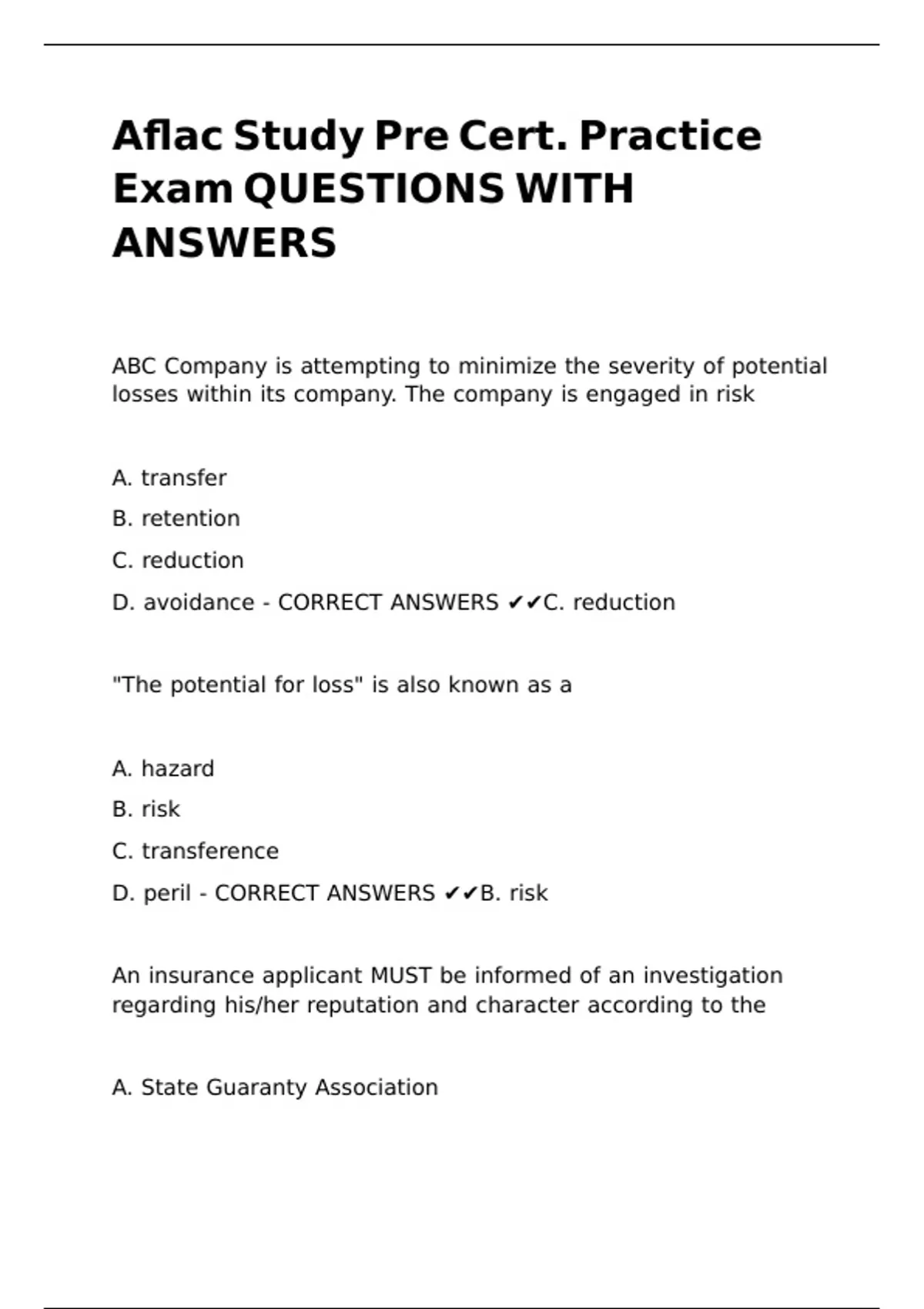 CORRECT ANSWERS ✔✔A. Pays a death benefit as a result of an
