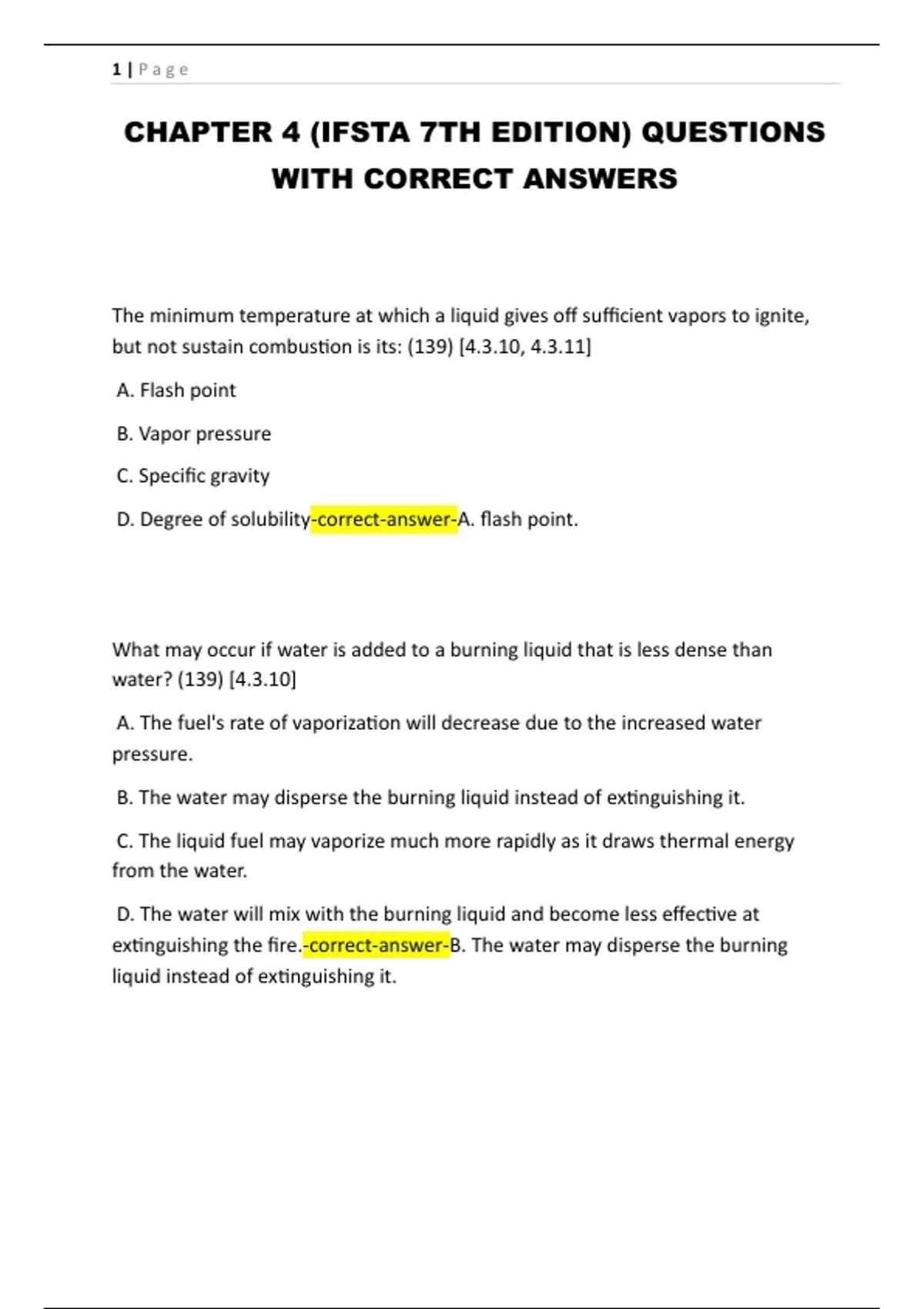 D. Degree of solubility-correct-answer-A. flash point.