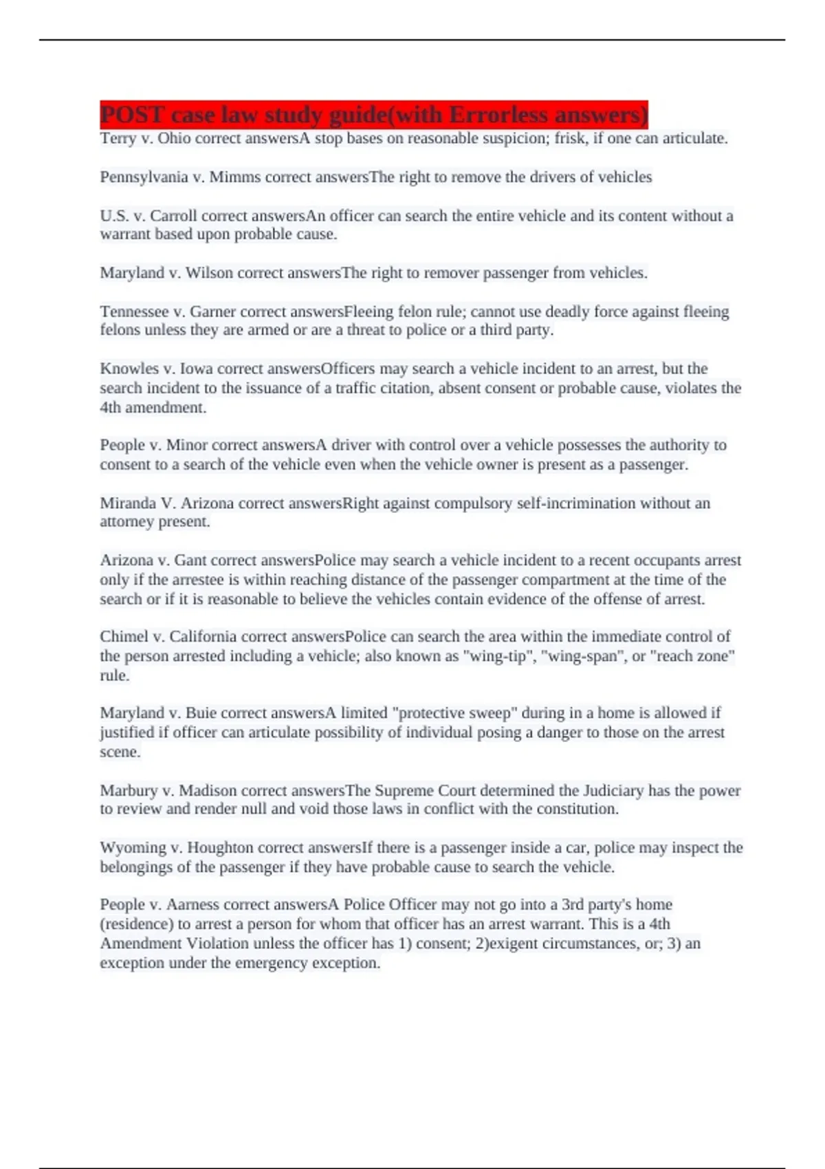 POST case law study guide(with Errorless answers)