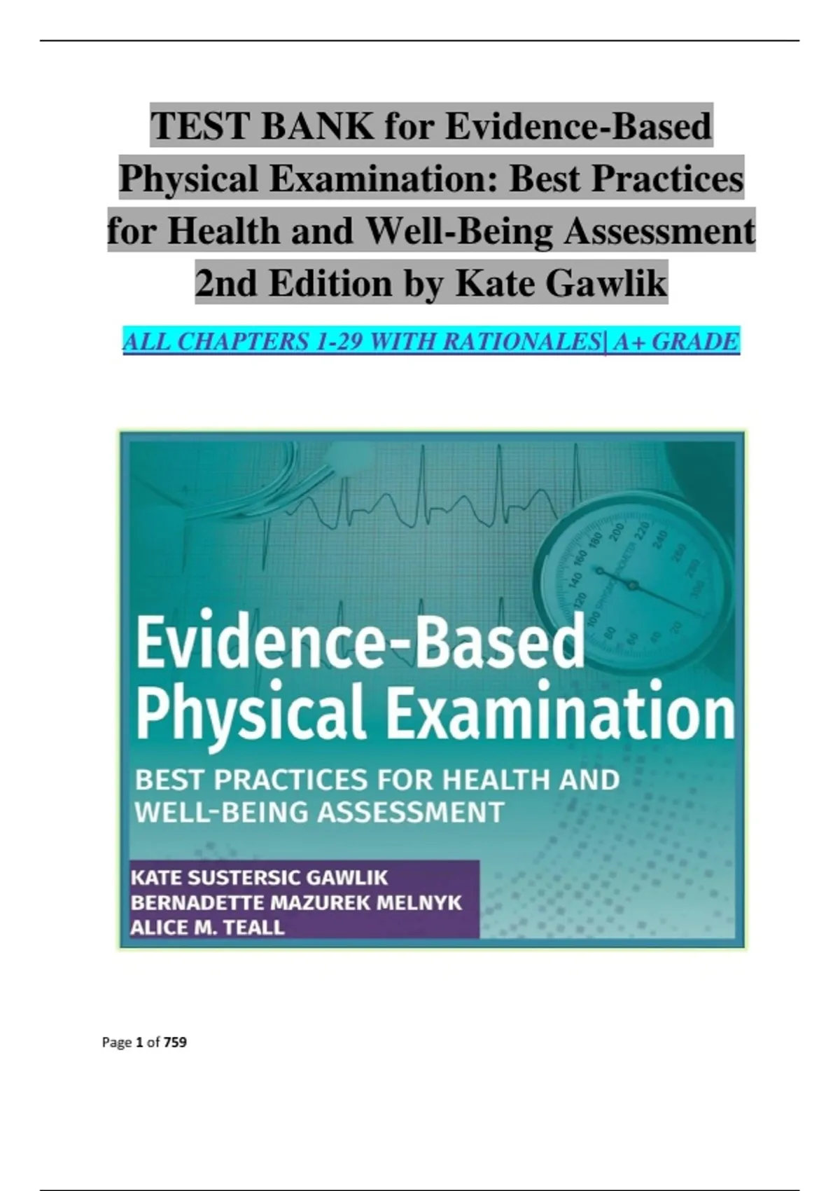 TESTBANK FOR Evidence-Based Physical Examination Best Practices for Health & Well-Being Assessment 2nd Edition ; ISBN: 9780826155313, All Chapters / Full Complete