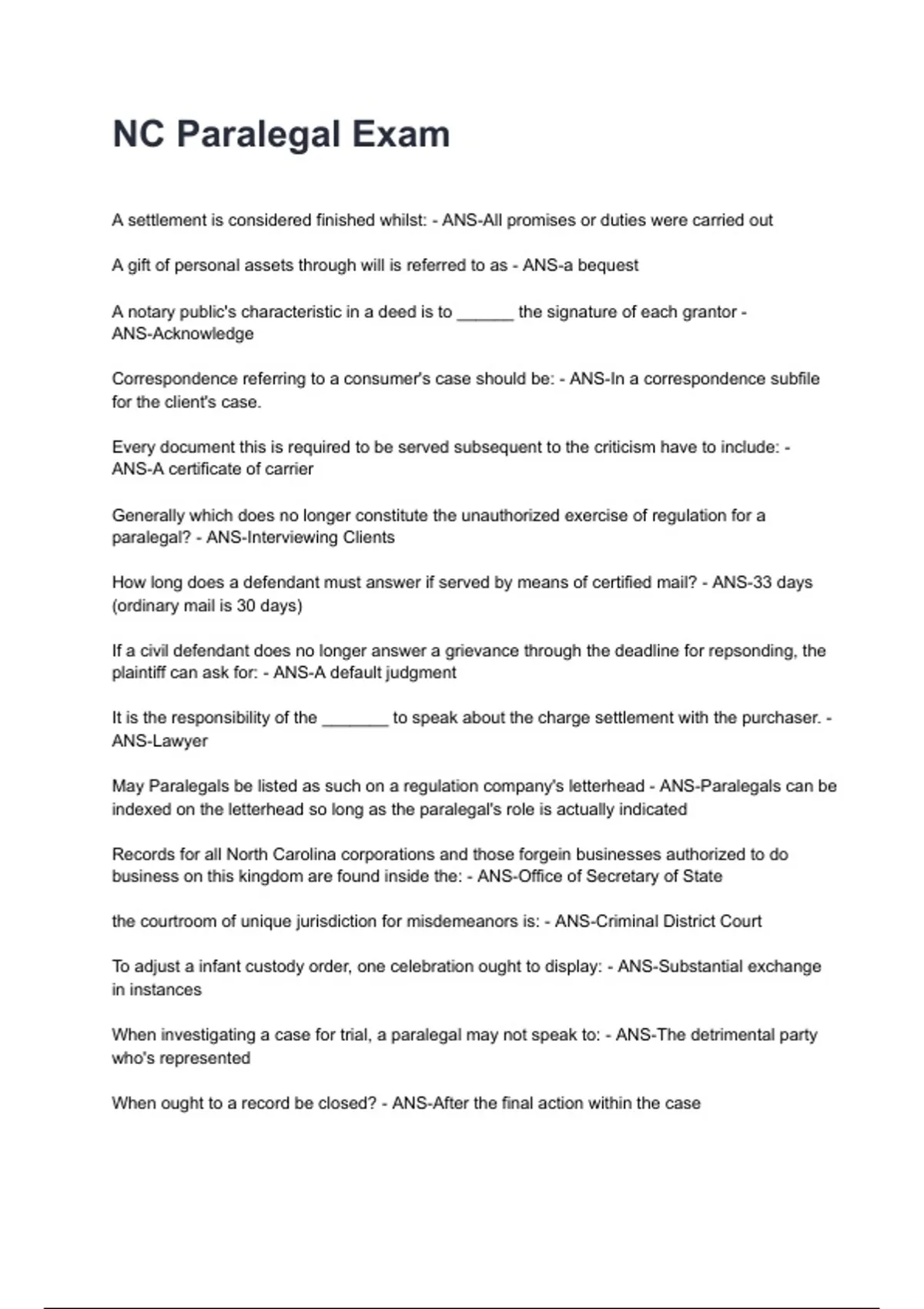 NC Paralegal Exam NEWEST 2025/2026 ACTUAL EXAM COMPLETE QUESTIONS AND CORRECT DETAILED ANSWERS (VERIFIED ANSWERS) |ALREADY GRADED A+||BRAND NEW!!