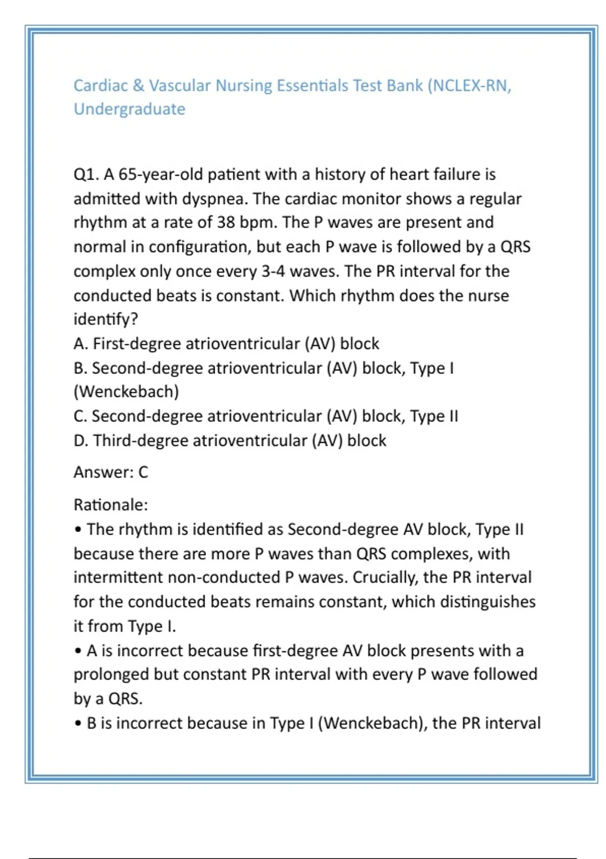 • B is incorrect because in Type I (Wenckebach), the PR interval