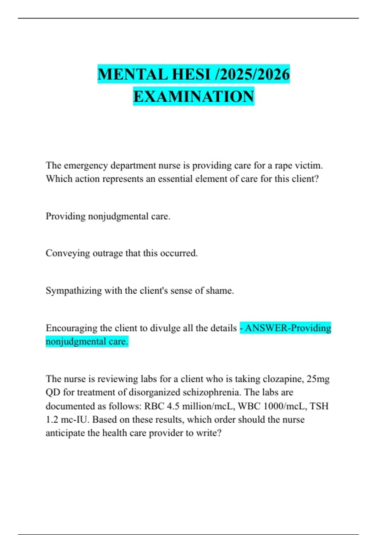 MENTAL HESI /2025/2026