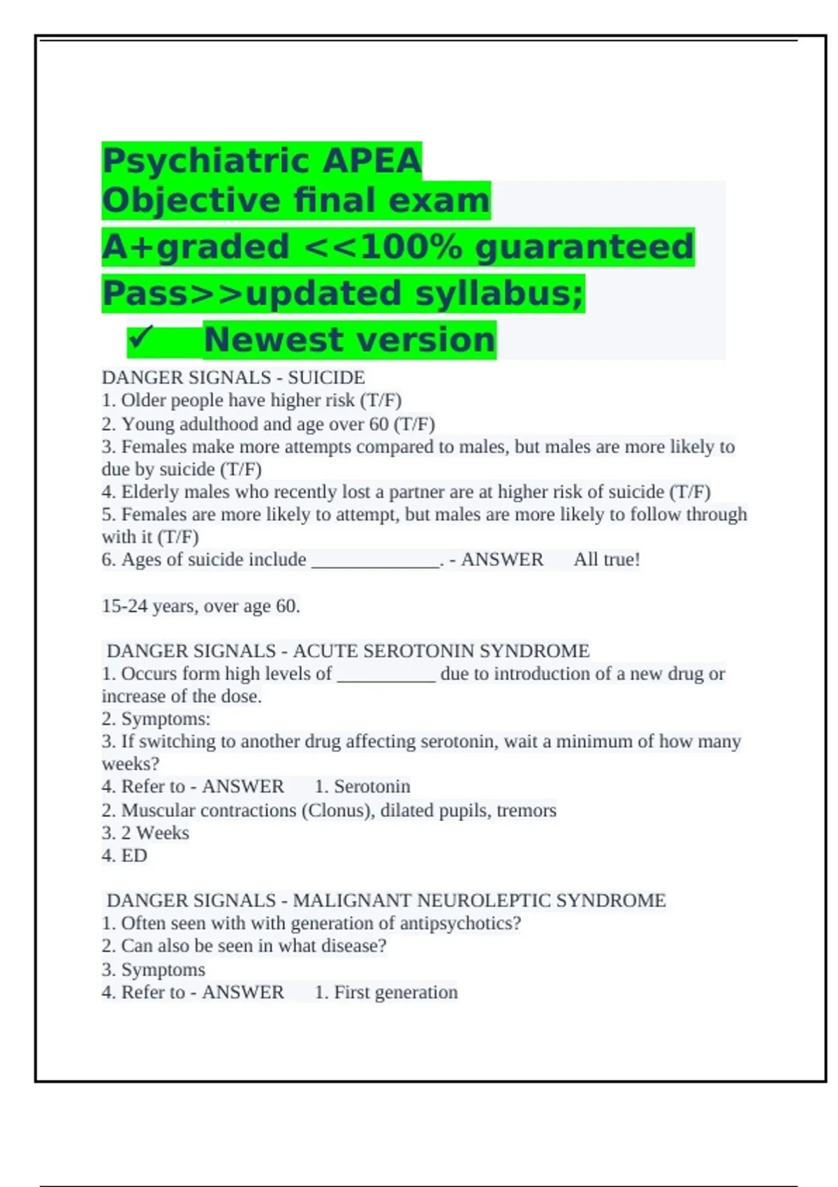 6. With chronic pain? - ANSWER ✅1. Suicide