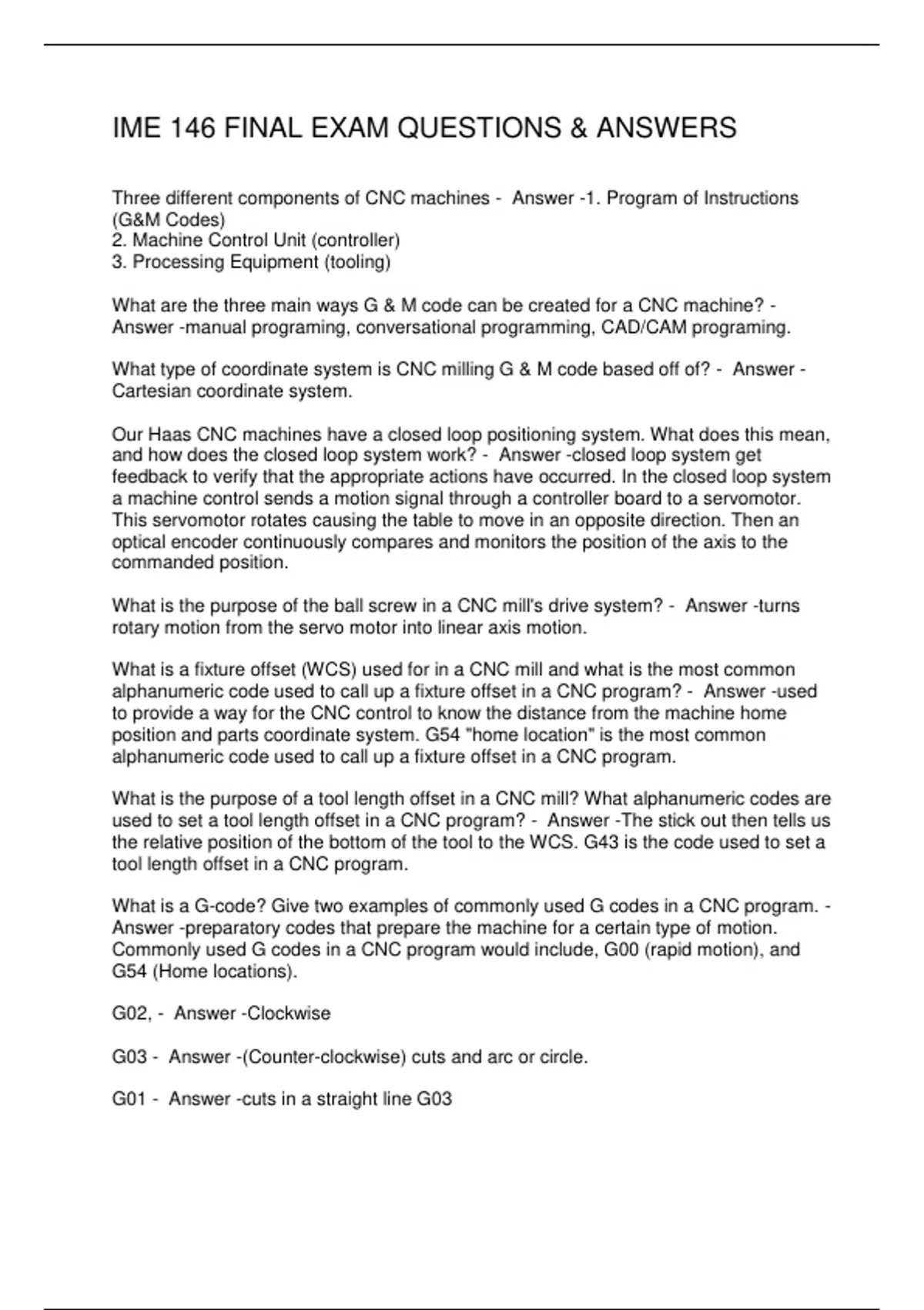 IME 146 FINAL EXAM QUESTIONS & ANSWERS