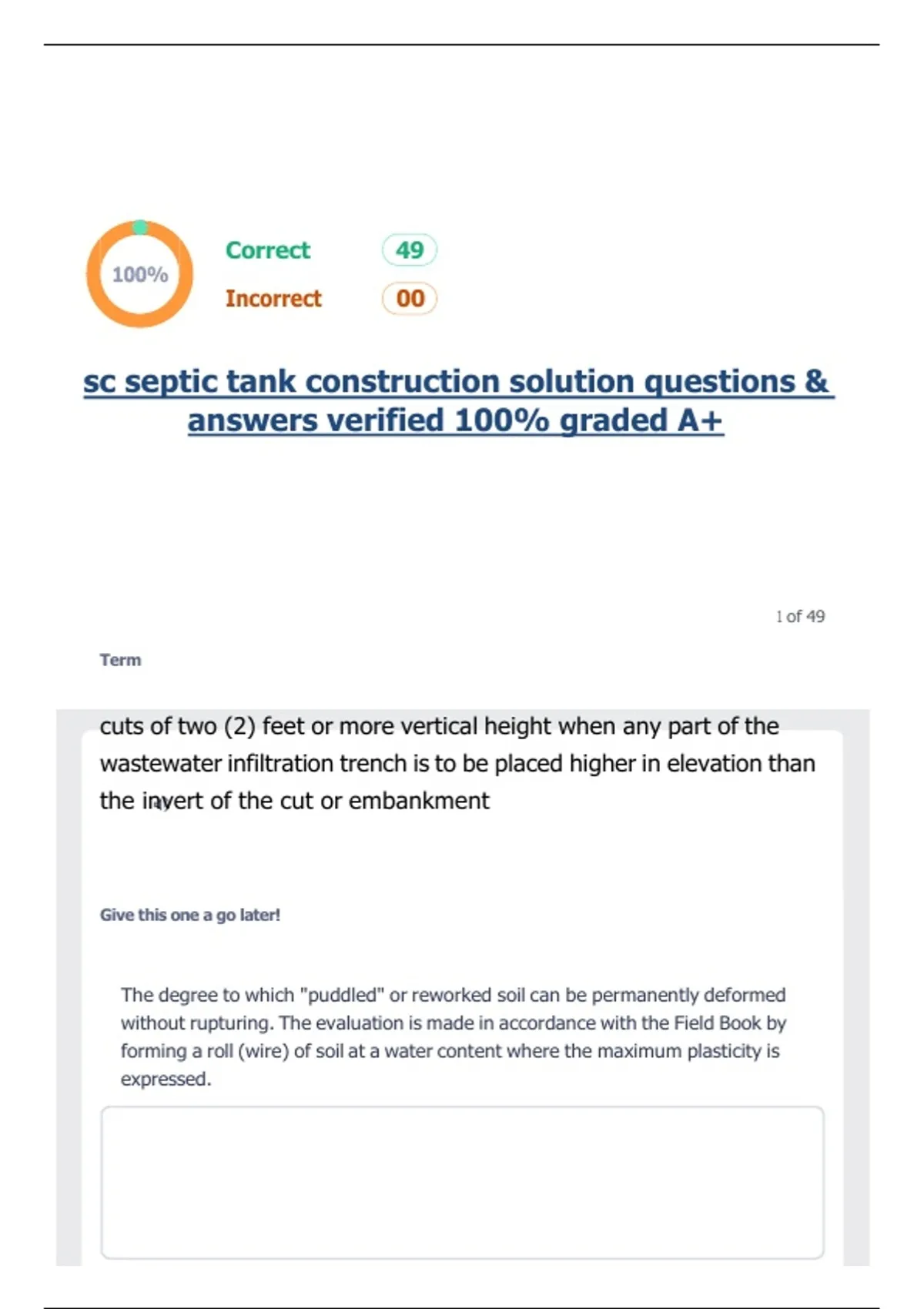 , sc septic tank construction solution questions & answers verified 100% graded A+