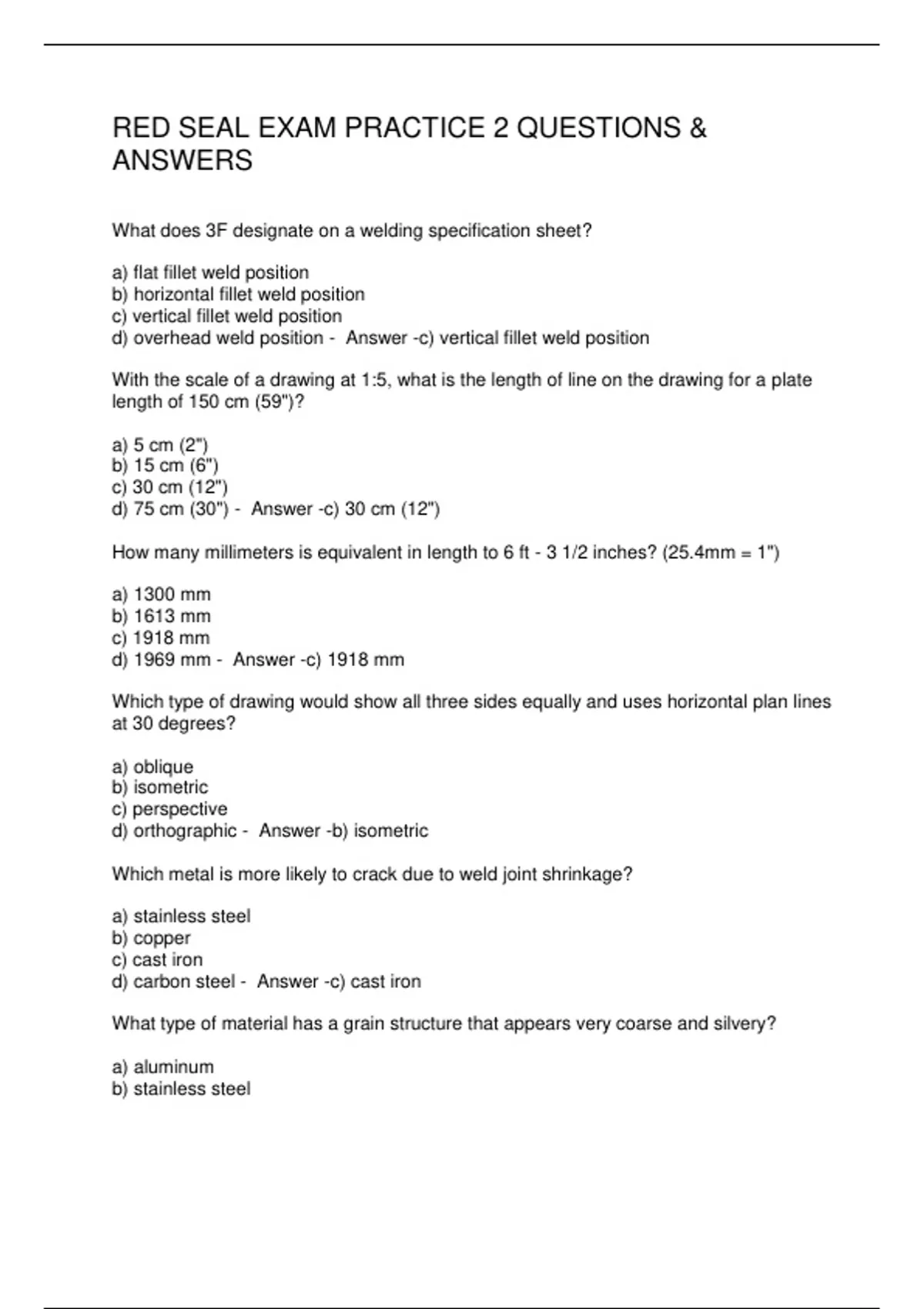 RED SEAL EXAM PRACTICE 2 QUESTIONS &