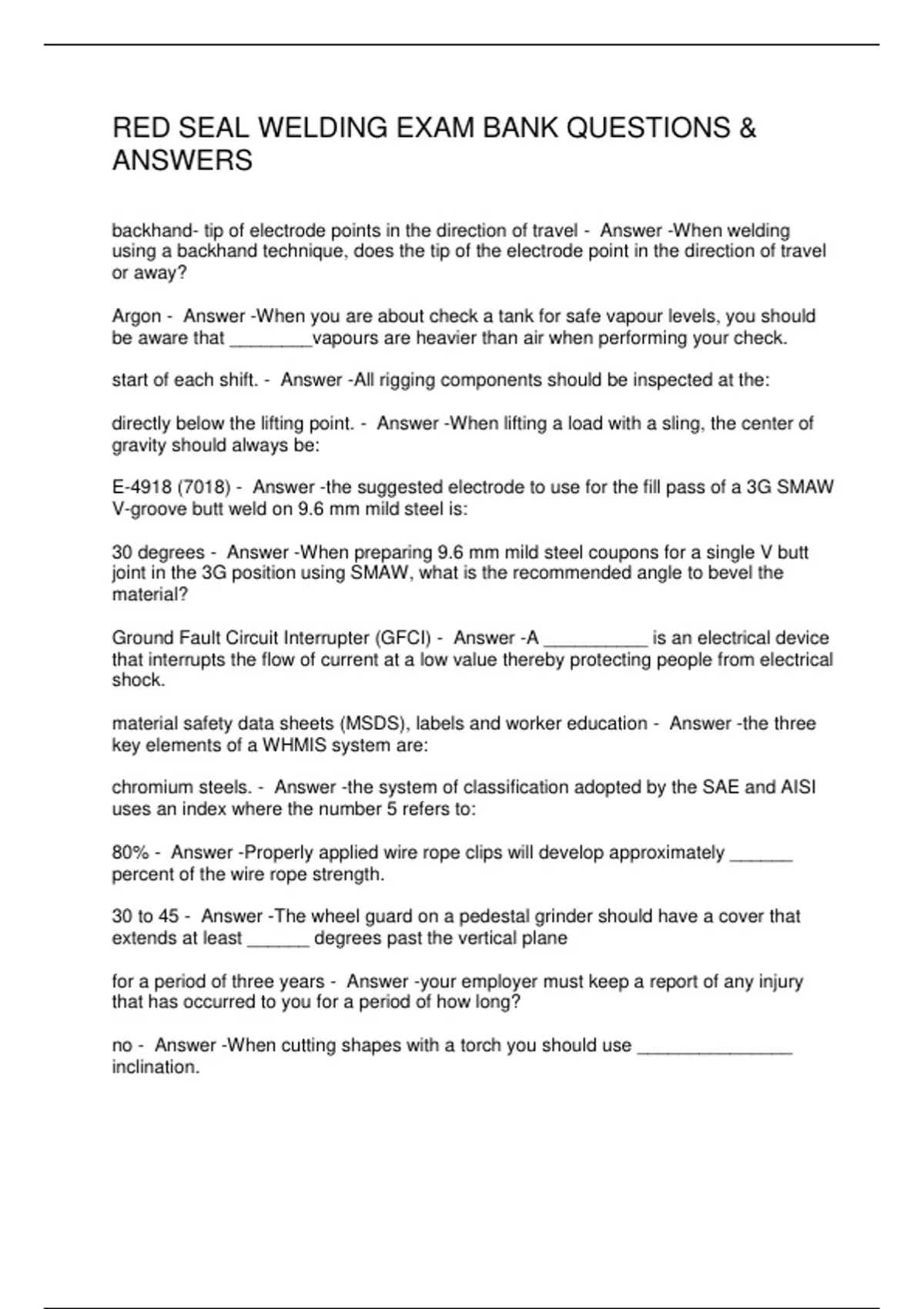 RED SEAL WELDING EXAM BANK QUESTIONS &