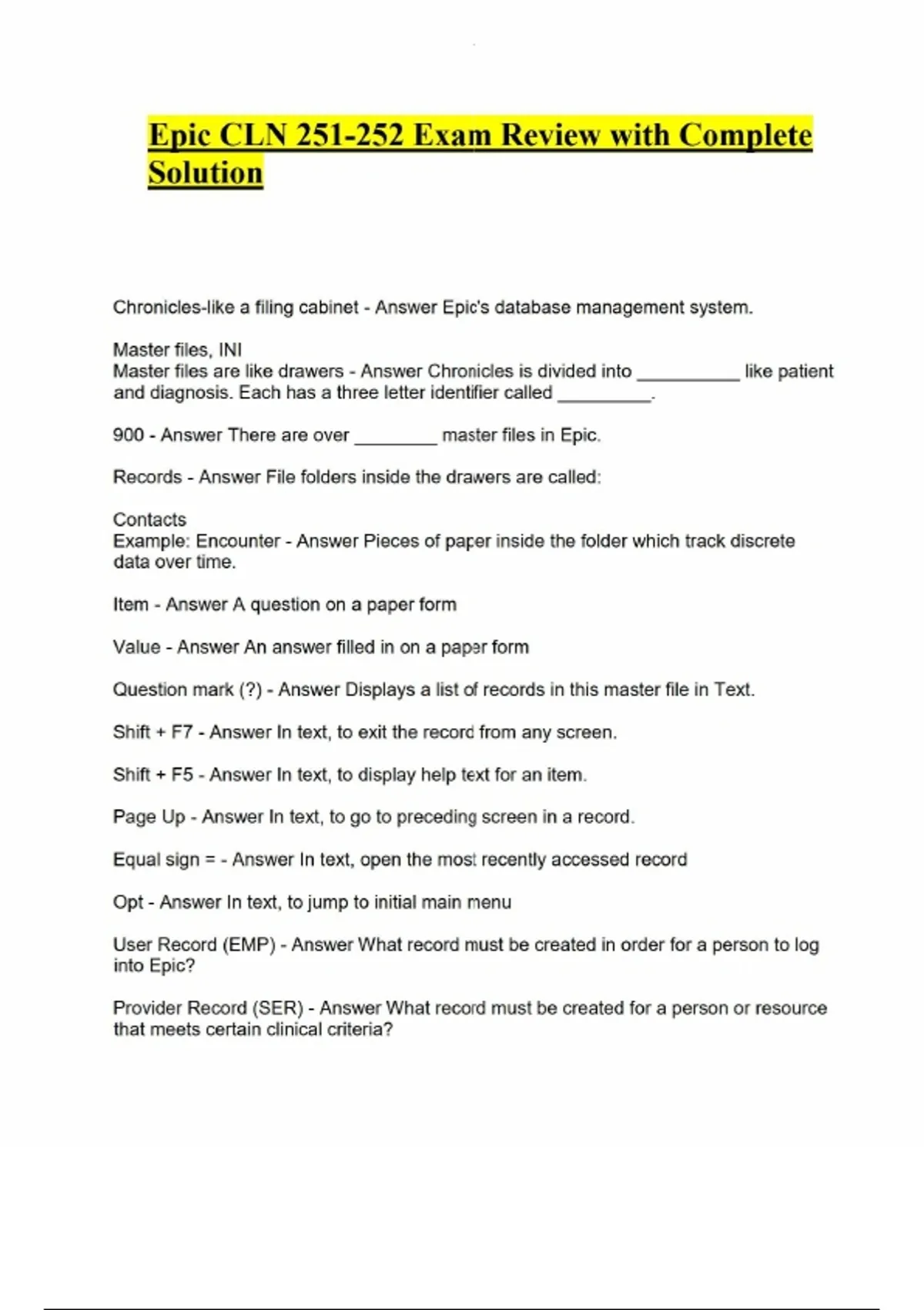 Epic CLN 251-252 Exam Review with Complete SolutionEpic CLN 251-252 Exam Review with Complete Solution